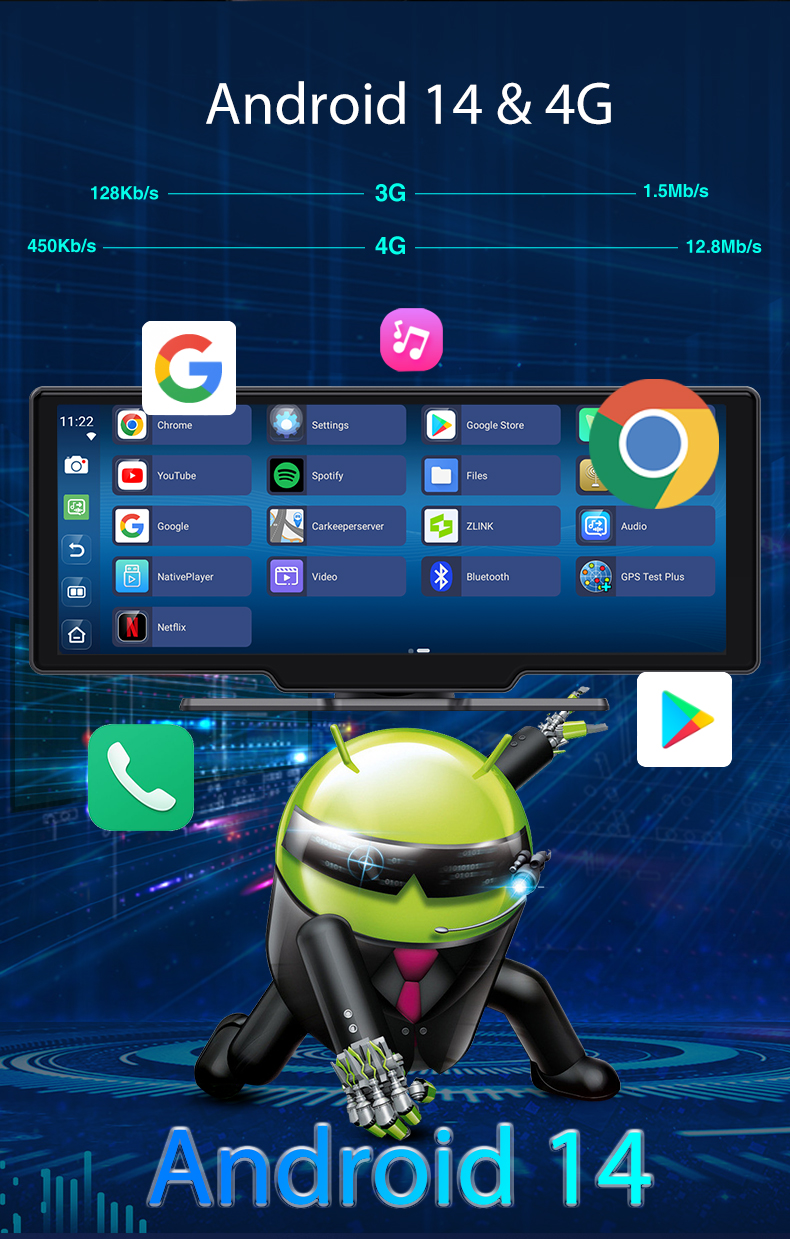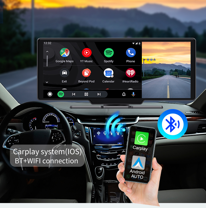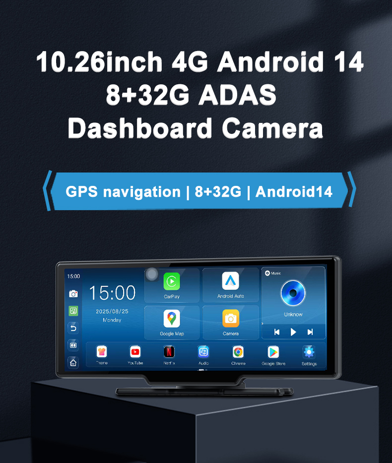 Fedélzeti Navigátor iSEN V9311A DVR, 4G, 10.26", 8GB RAM, 32GB ROM, Nyolcmagos, Android 14, GPS, Vezeték nélküli Apple CarPlay és Android Auto, Tolatókamera