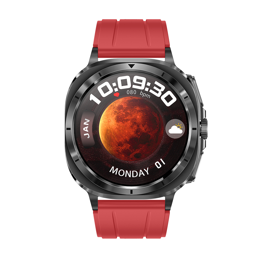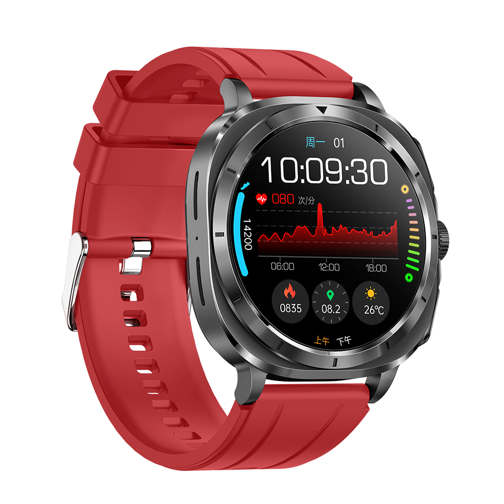 Okosóra iSEN ET492, Piros szilikon szíj, 1,43" AMOLED HD, HRV, EKG, Egészségügyi monitorozás, Sport funkciók, Bluetooth hívás, 380 mAh, Android 5.0 vagy iOS 10.0 vagy újabb, NFC zárakhoz