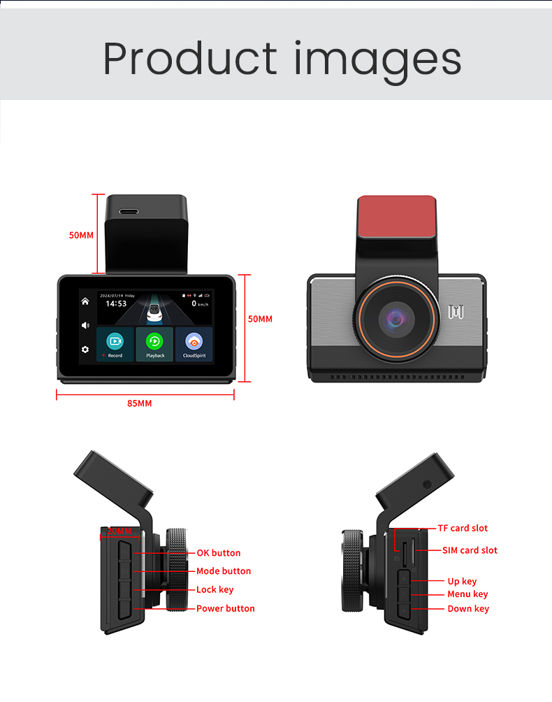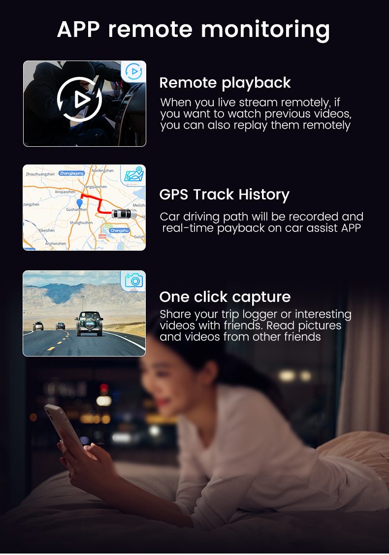 Funkciók: Monitorizare la distanță Inregistrare in bucla Monitorizare parcare 24H G-sensor Playback video