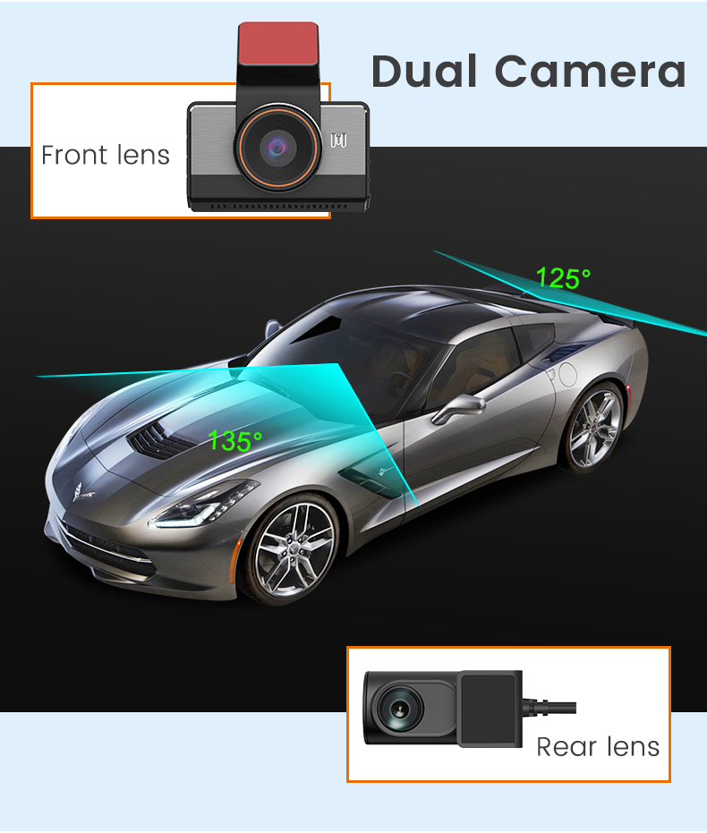 iSEN P83 autós kamera, 2K 25 fps, 4G LTE, Beidou GPS, 3" IPS képernyő, WiFi hotspot, távfelügyelet, elülső kamera 140°, hátsó kamera 130°