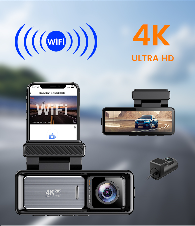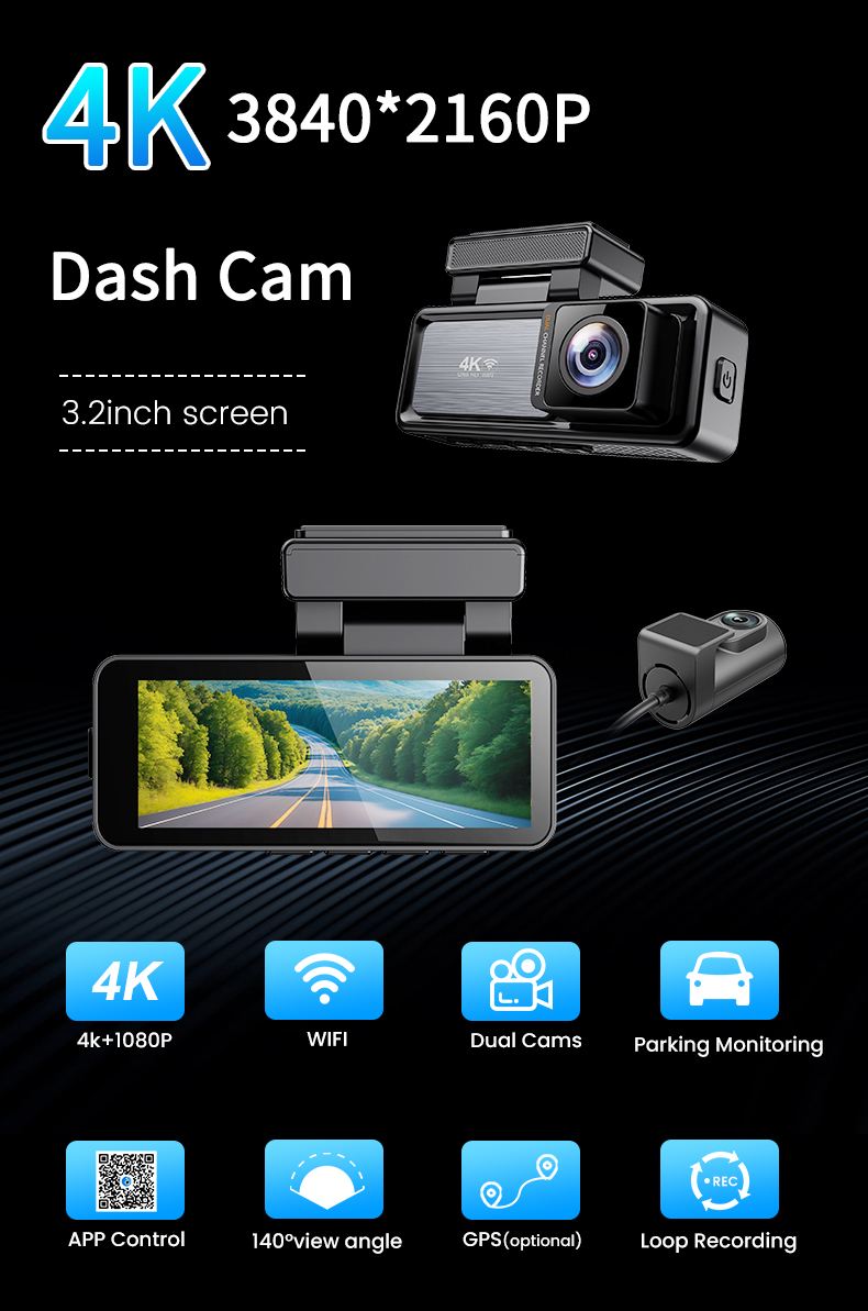 iSEN X20 autós kamera, 2.4G LTE, 3.2" IPS, 4K 25fps, WiFi Hotspot, GPS modul, távoli monitorozás, G-érzékelő, kétirányú kommunikáció, elülső/hátsó kamera.