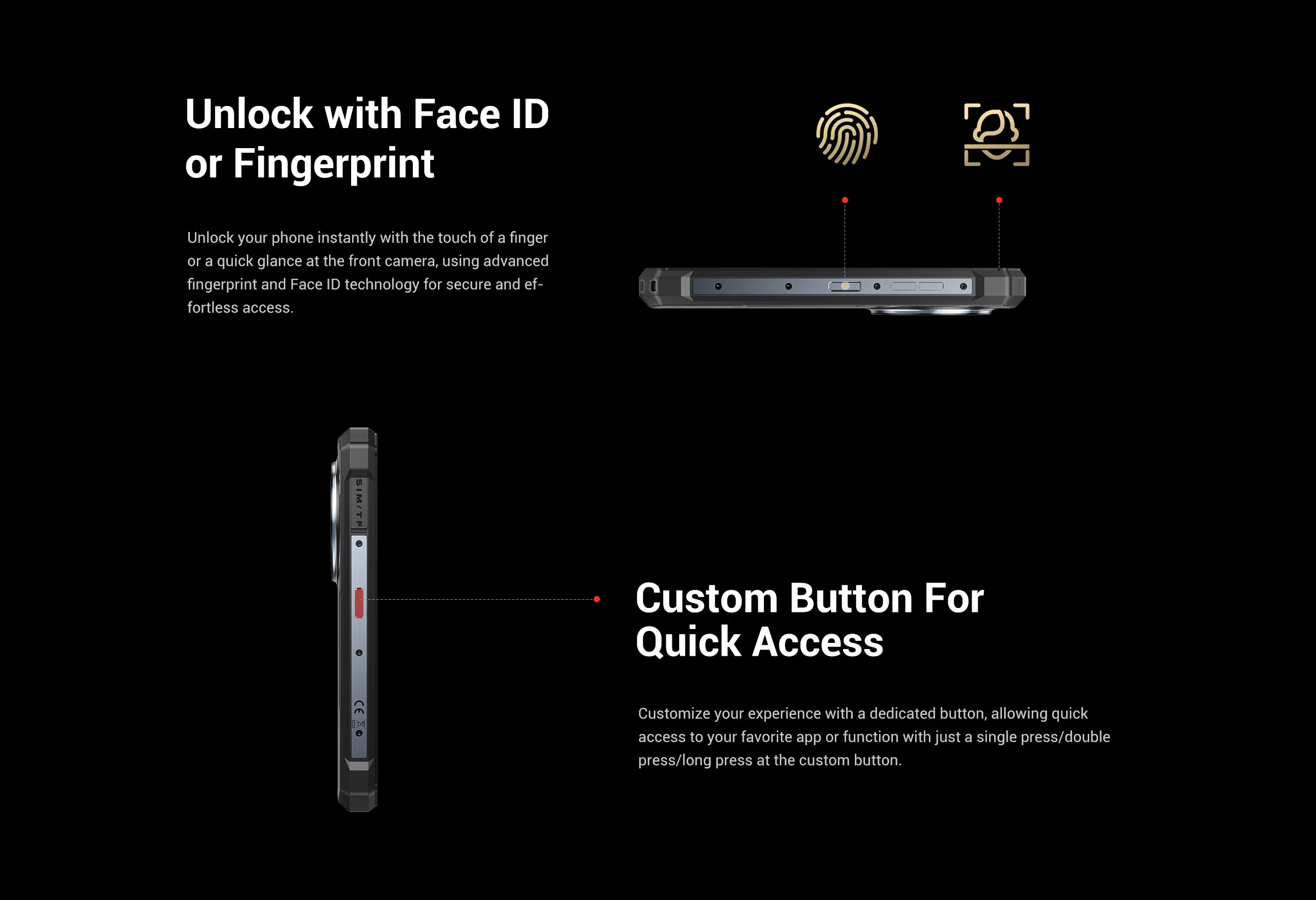 Egyéb Eszköztár, arcazonosító, NFC, ujjlenyomat, IP68/IP69K vízálló