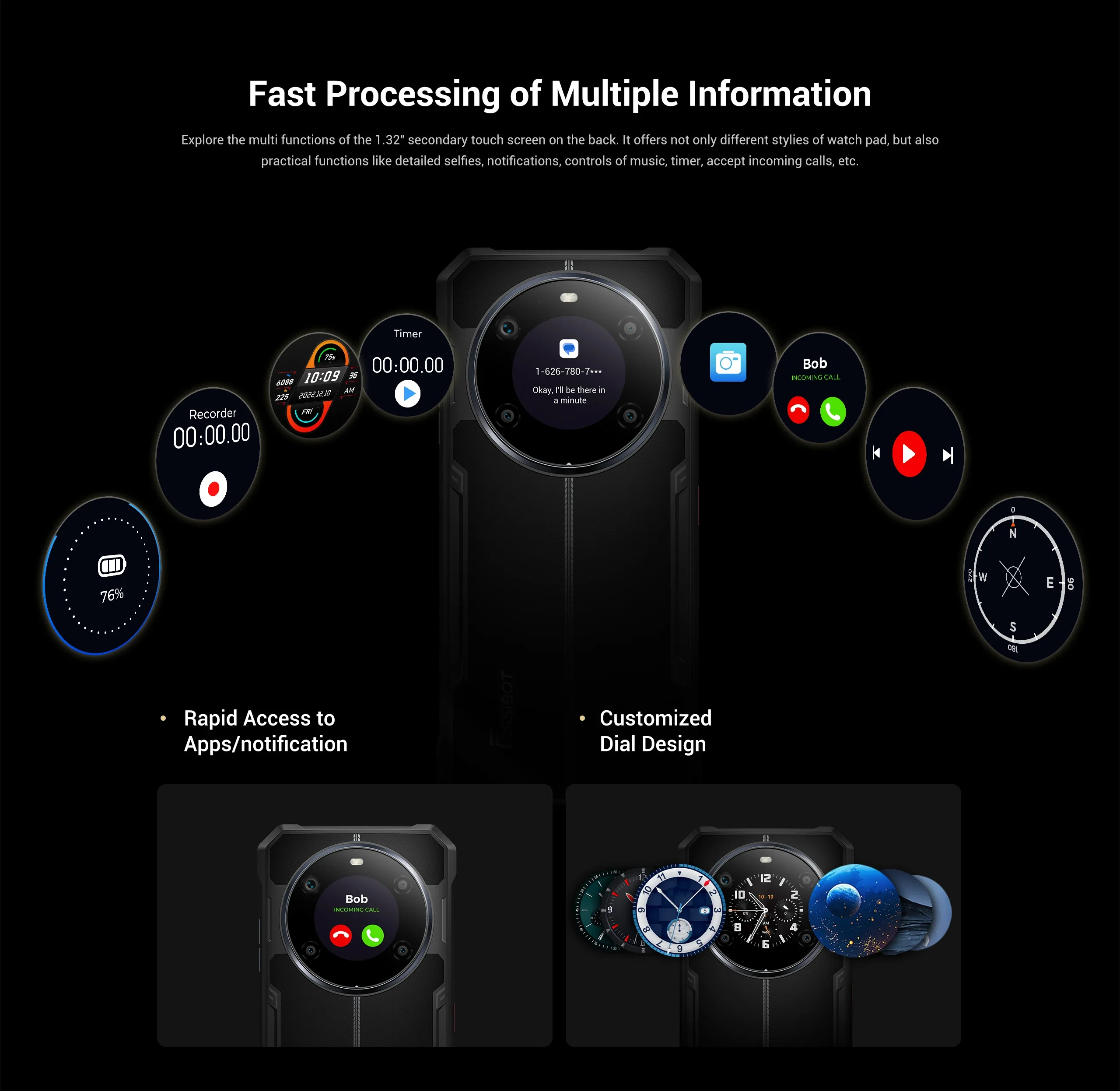 A Fossibot F109 Pro 5G lenyűgöz innovatív dizájnjával, kettős kijelzőjével és nagyméretű képernyőjével, amely ideális többfeladatos munkavégzéshez és szórakozáshoz. Gyors teljesítményével, fejlett kamerájával és hosszú akkumulátor-üzemidejével ez a telefon tökéletes az aktív és kapcsolatban álló felhasználók számára.