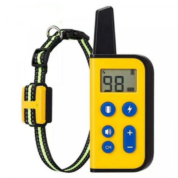 Zgarda electrica pentru dresaj caini STAR Remote Dog Training Collar Galben, Waterproof, Telecomanda cu display LCD iluminat, Reincarcabila