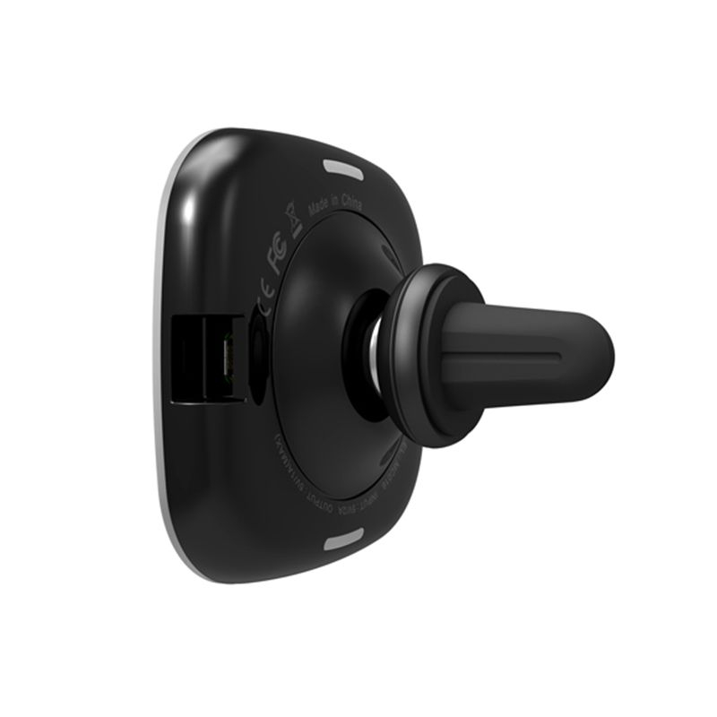 Nillkin car magnetic wireless charger(Fast charge) is made of selected high-quality material. Unique design. The panel is made of quality carbon fiber material. Excellent performance, thin and lightweight. Upgraded fast charging, high conversion rate. Provide you convenient charging experience in car. Built-in strong magnets and Qi standard wireless charging device. Charges on contact. Strong magnets provide secure hold of your phone. Easy application, flexible silicone clip on the vent. With 360° rotating stainless steel ball. Adjustable for comfortable angled viewing. Blue indicator lights on two sides tell you the charging state.