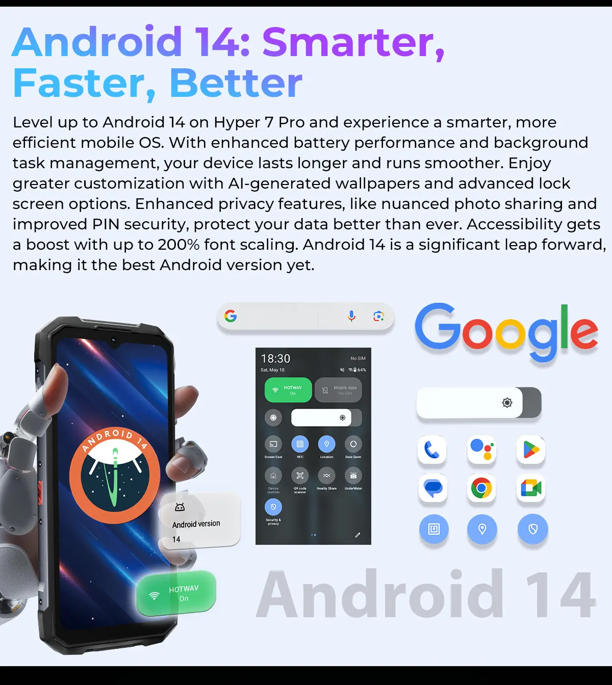 Mobiltelefon HOTWAV Hyper 7 Pro, Fekete, 5G, 6.6" 2.4K 120Hz, 36GB RAM (16GB+20GB bővíthető), 256GB ROM, 200MP+24MP Éjjellátó, Android 14, MediaTek Dimensity 7050, 10800mAh, NFC, Dual SIM