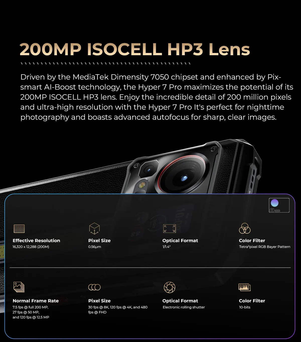 | Kamera | Fő: 200MP Másodlagos: 32MP Éjjellátó: 24MP |