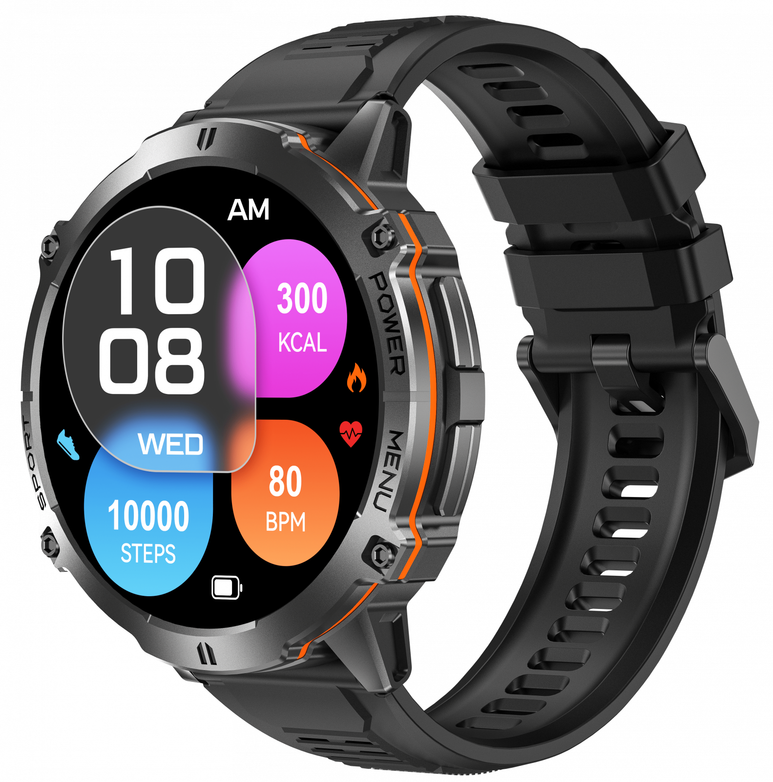 A fekete iSEN X3 okosóra teljeskörű egészségfigyelést nyújt: pulzus, alvás, oxigén, stressz és több mint 100 sportmód. 1.73" AMOLED kijelző, Bluetooth hívások, értesítések, 1ATM vízállóság, hosszú üzemidő és kényelmes szilikon szíj.