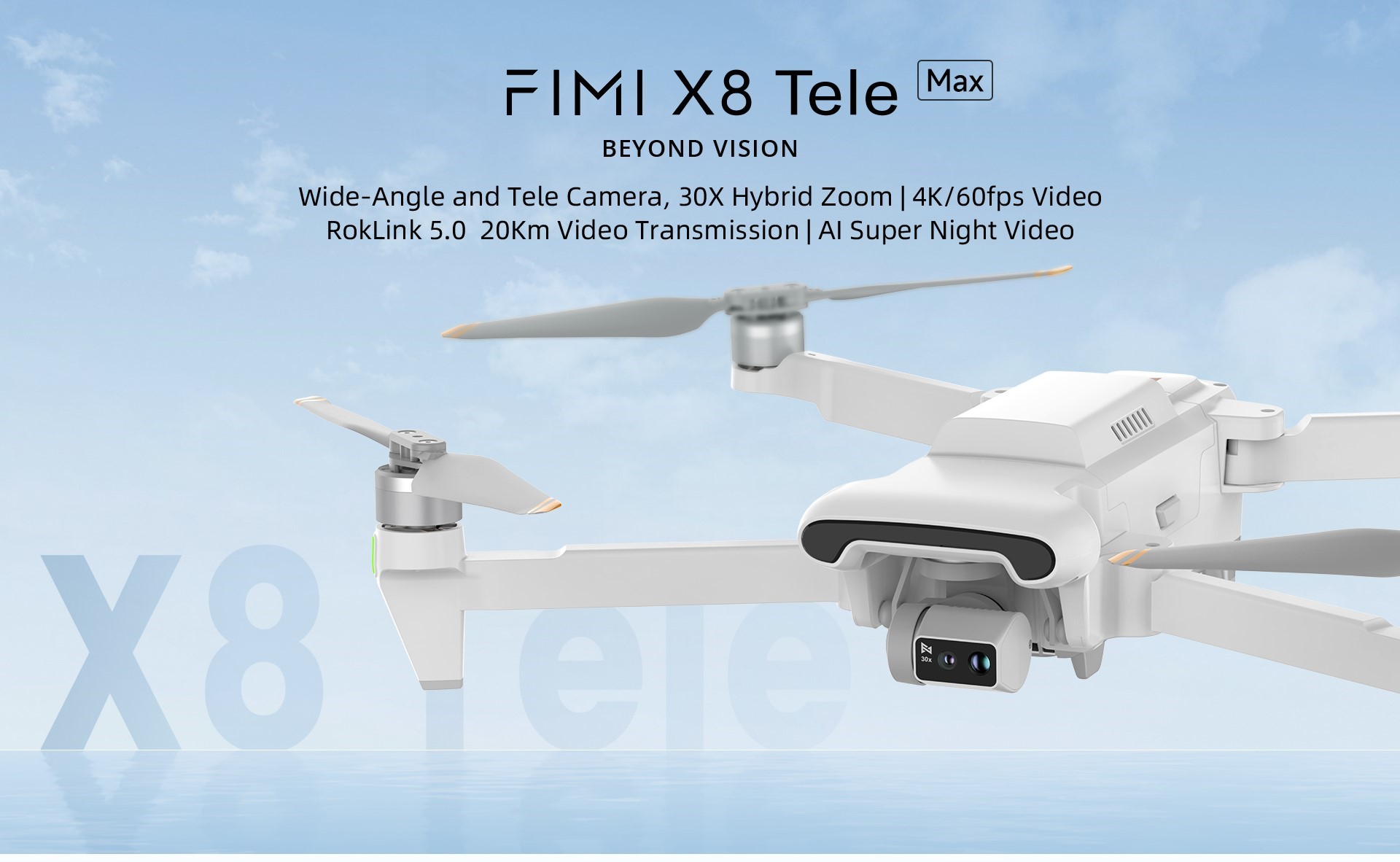 FIMI X8 Tele Max Összecsukható drón, 4K/60fps, 48MP, RokLink 5.0 20km, 30x hibrid zoom, 3 tengelyes gimbal, 5000m maximális repülési magasság, 18m/s sebesség, Smart Tracking, GPS, Super Night Video, A