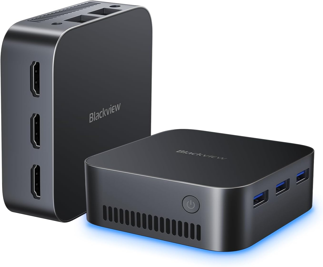 Mini PC Blackview MP80 Fekete, 4K@60Hz, 16GB LPDDR4 RAM, 512GB SSD ROM, Intel N95, Windows 11 Pro, Kettős 4K Kijelző, Wi-Fi, Bt 4.2