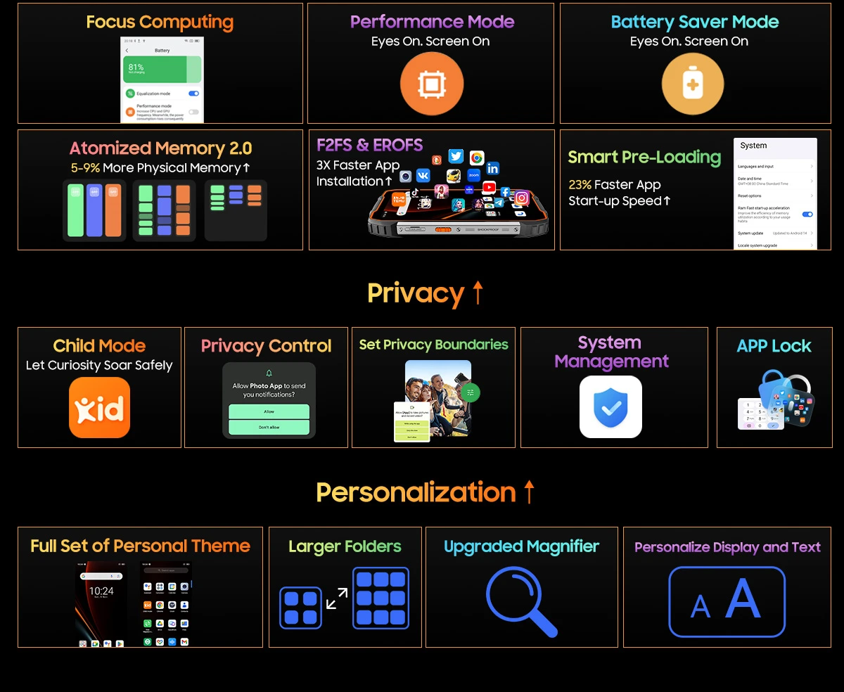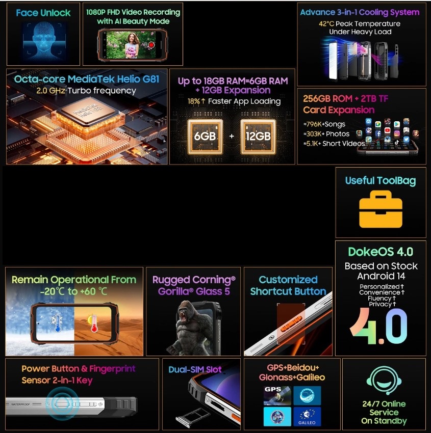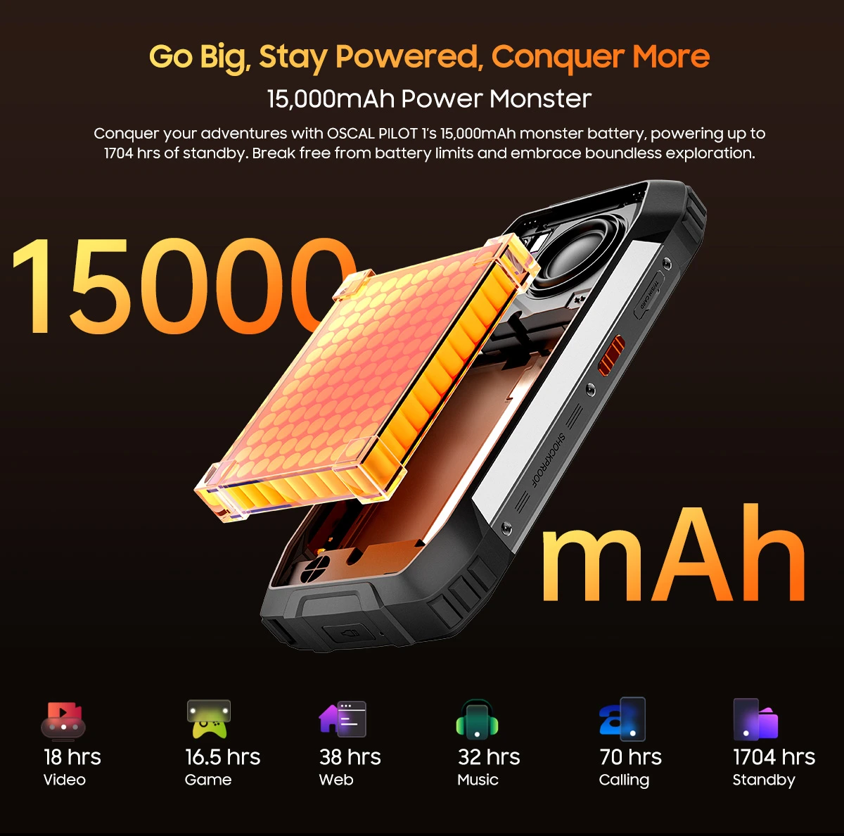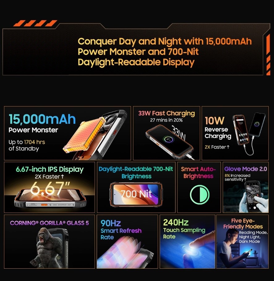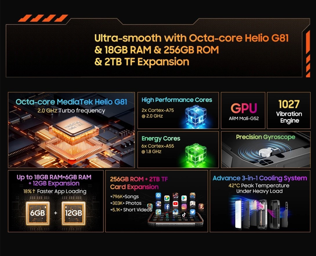 OSCAL PILOT 1 mobiltelefon, Fekete, 4G, 6.67" HD+, 18GB RAM, 256GB ROM, MediaTek Helio G81, 15000mAh akkumulátor. Strapabíró és erős készülék, elegáns dizájnnal és okos funkciókkal, mindennapi használatra és komoly feladatokra