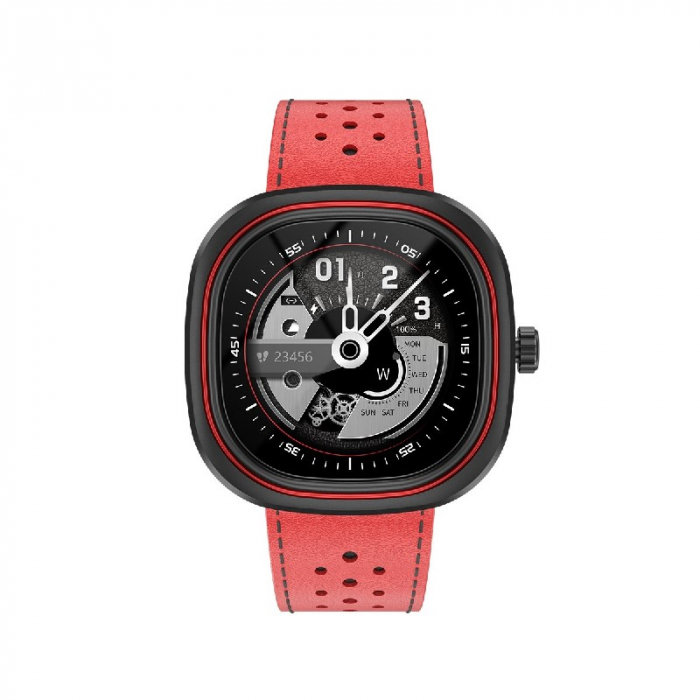 Okosóra Doogee DG Ares Piros, bőrszíj, 1,32" HD LCD, pulzusmérő, oxigénszaturáció-figyelés, alvásfigyelés, 300mAh