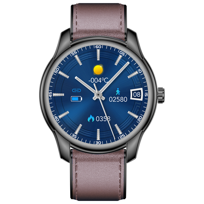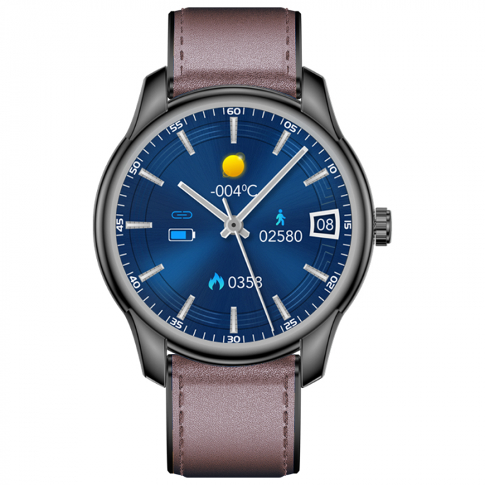 Okosóra iSEN Watch W9 Fekete sötétbarna bőr karkötővel, 1,3" testreszabható kijelző, IP68, 200mAh, HR, feszültség, értesítések, zene