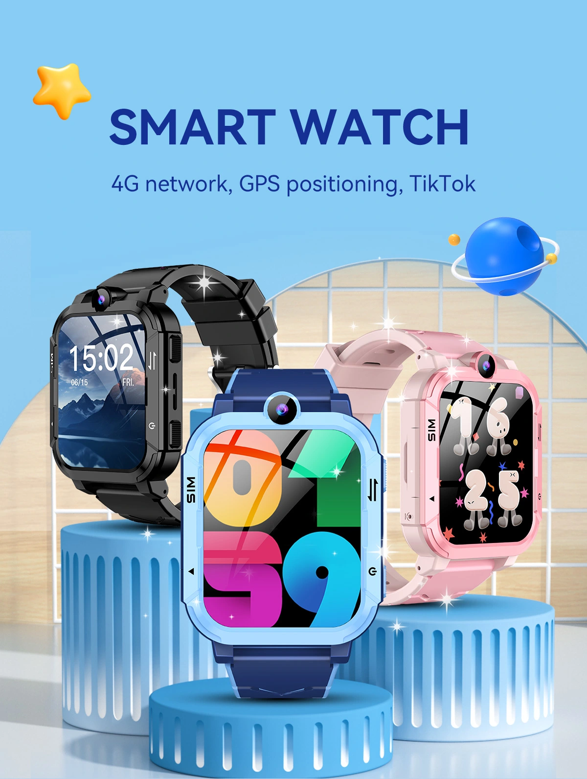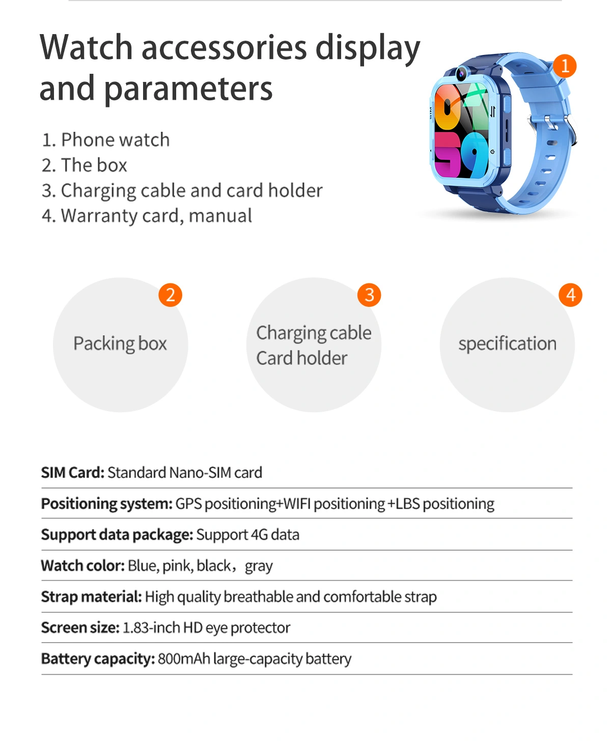 Funkciók: SOS, GPS, Monitorizare locație, Ceas desteptator, Camera foto, Monitorizare traiectorie, WiFi, 4G, Apel video, Control parental