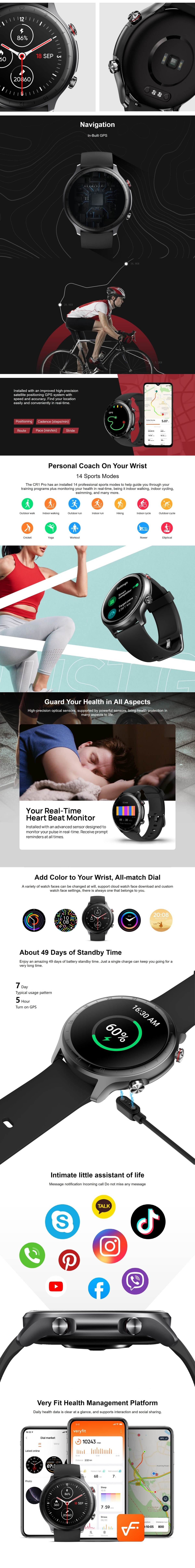 Funkciók: Distanta parcursa, GPS, Meteo, Control muzica, Ritm cardiac, Memento hidratare, Monitorizare somn, Memento sedentarism, Pedometru, Contor calorii, Saturatie oxigen