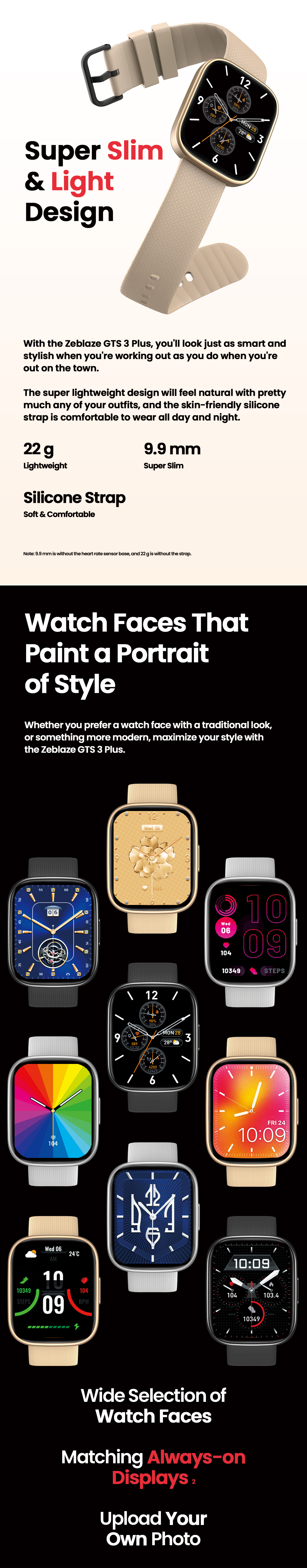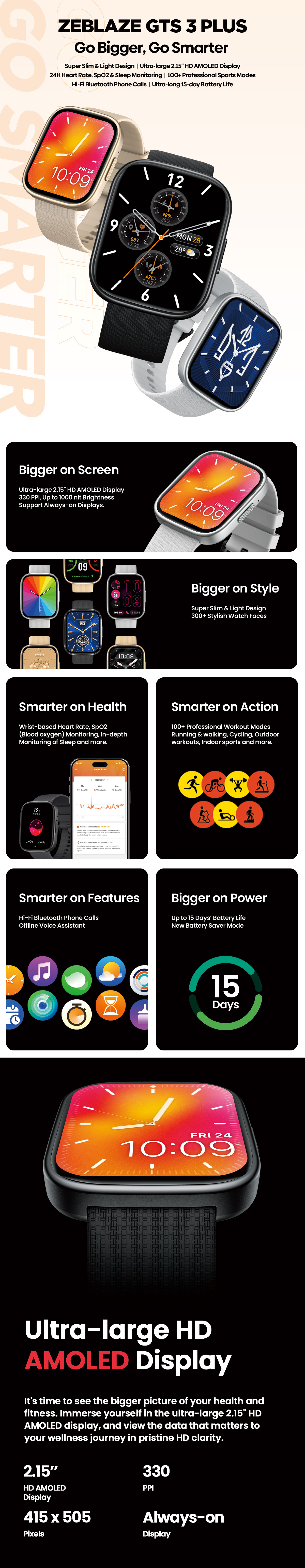 Smartwatch Fitness & Wellness Zeblaze GTS 3 Plus, Gold, Display Amoled 2.15'' HD, Apel telefonic Hi-Fi Bluetooth, Asistare vocala offline, Moduri sport 100+, Monitorizare sanatate 24/24, IP68, 300mA
