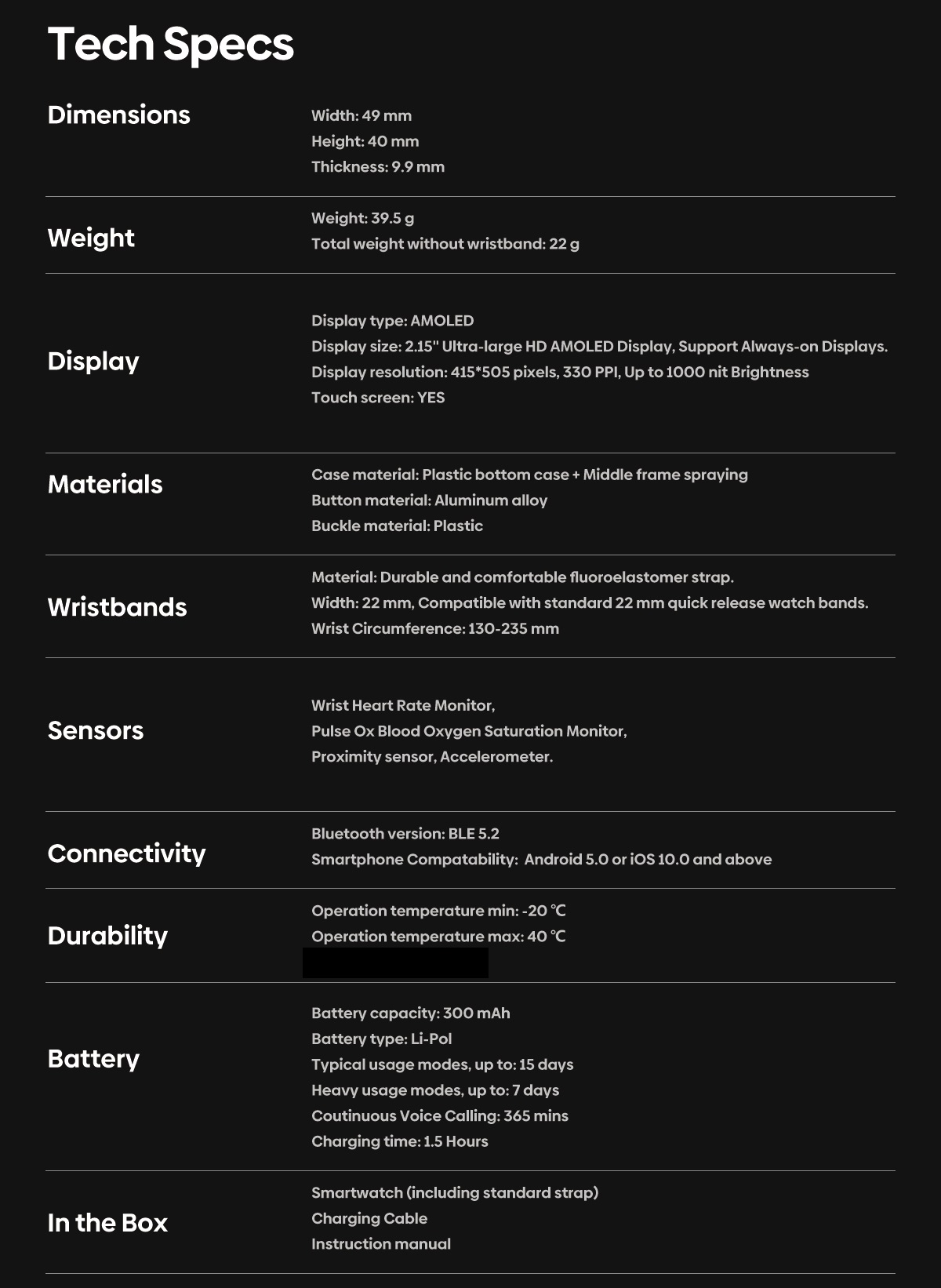 Funkciók: Alarma, Notificari inteligente, Cronometru, Apeluri Bluetooth, Busola, Ritm cardiac, Numaratoare inversa, Antrenament respiratie, Monitorizare stres, Pedometru, Consum calorii, Saturatie oxigen
