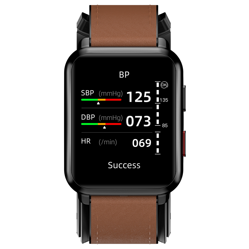 Smartwatch iSEN Watch P80 Negru cu bratara maro din piele, 1.65" HD, Tensiometru cu manseta gonflabila, Ritm cardiac, Temperatura, Oxigen