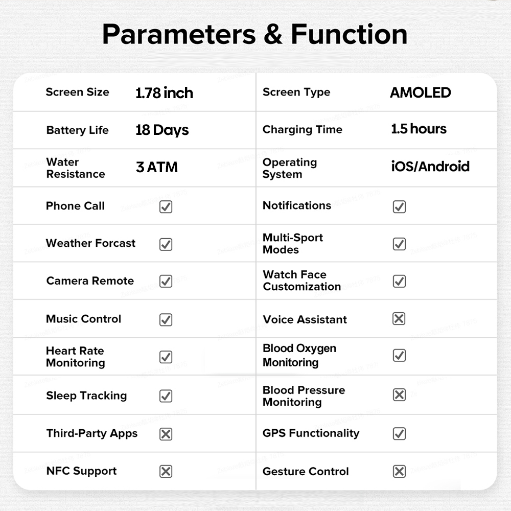 | Bluetooth hívások Alvásfigyelés Értesítések Lépésszámláló SpO2 mérés Integrált GPS Riasztás Pulzusmérés |