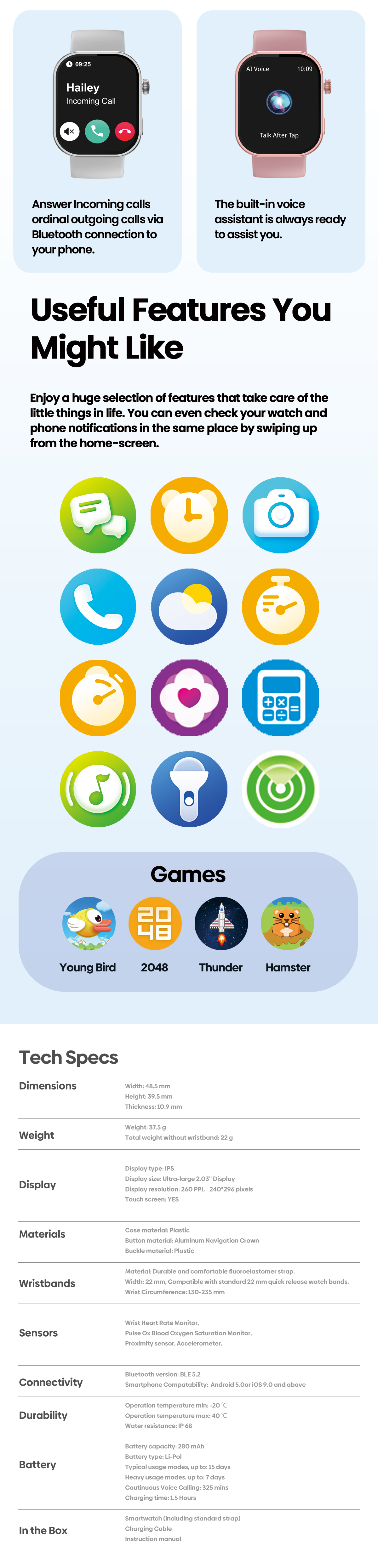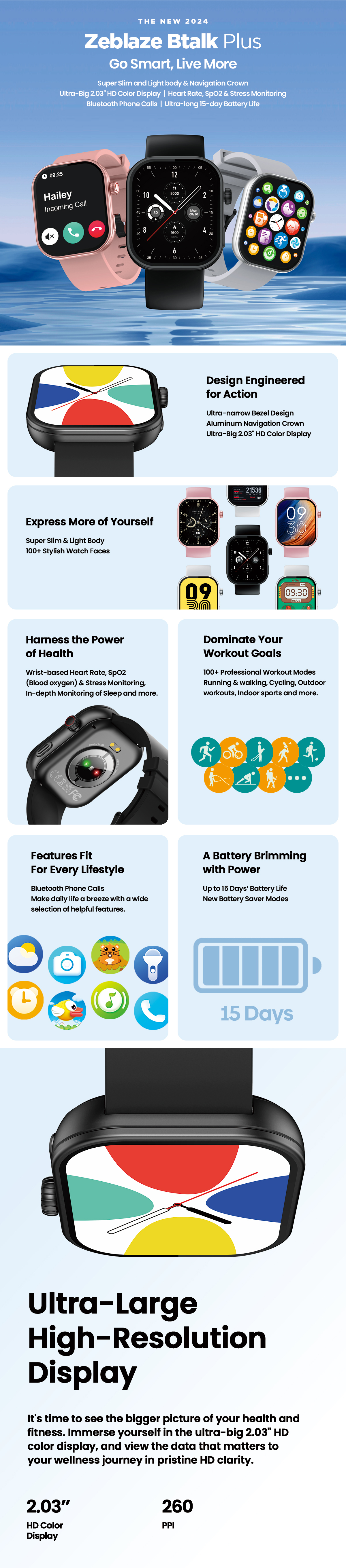 Smartwatch Zeblaze Btalk Plus, Negru, 2.03'' HD, Apel telefonic bluetooth, Asistare vocala, Moduri sport 100+, Monitorizare sanatate 24/24, Jocuri, IP68, 280mAh