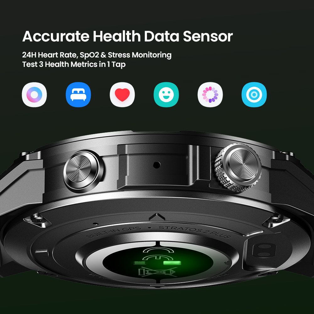 A Zeblaze Stratos 2 Plus okosóra egy elegáns és nagy teljesítményű eszköz, amely tökéletes az egészség és a napi tevékenységek nyomon követésére. Robusztus kialakítással és 1,43 hüvelykes AMOLED kijelzővel rendelkezik, és hasznos funkciókat kínál, mint a szívritmus, a vér oxigénszintje, az alvás és a stressz monitorozása. Emellett Android és iOS rendszerekkel is kompatibilis, és több sportmódot is tartalmaz a hatékony edzésekhez.