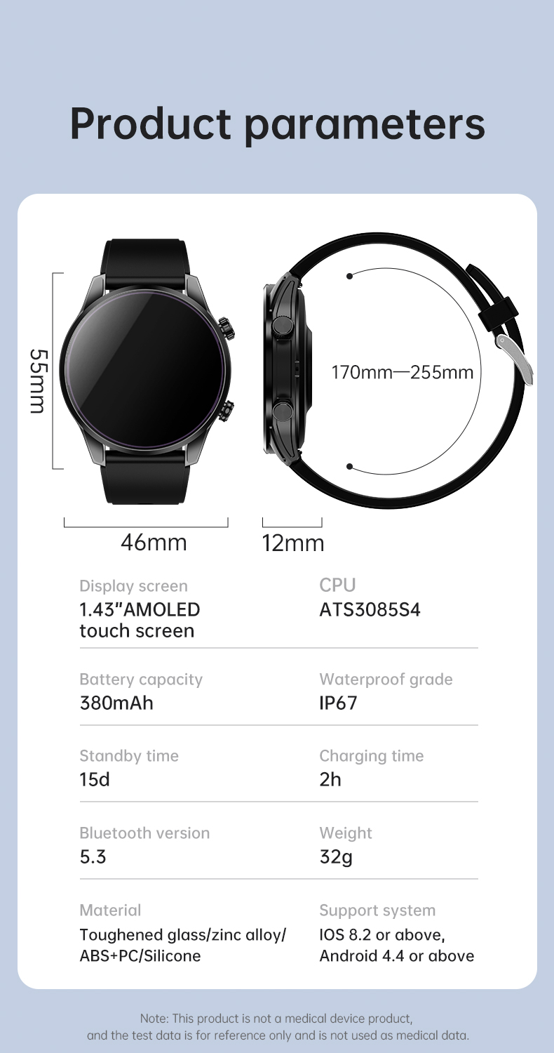 iSEN Okosóra iSEN G1000 Fekete, 1.43" AMOLED, Sport módok, GPS és Beidou helymeghatározás, Egészség- és alvásmonitorozás, Bluetooth hívás, Hangasszisztens, Menstruációs monitorozás