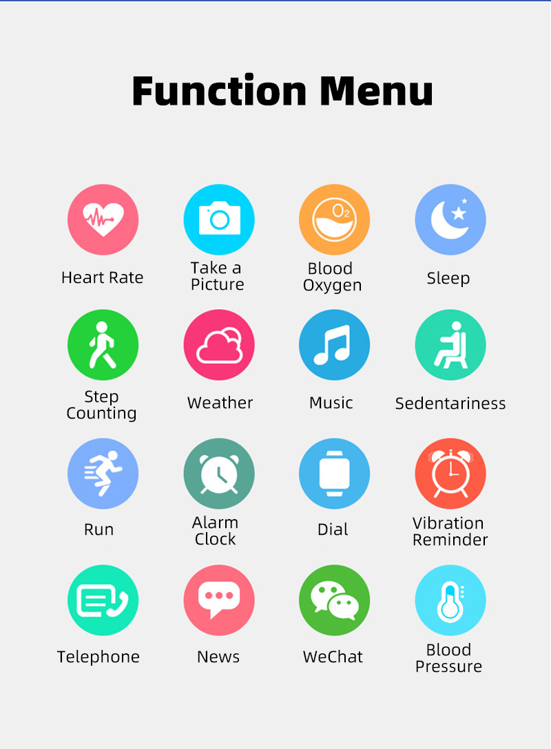 Funkciók: Pasometru, Oximetru, ECG, Tensiometru, SOS, Glicemie, Monitorizare acid uric, Monitorizare lipide sange, Calorii, Moduri sport, Apeluri Bluetooth, Notificari, Meteo, Temperatura, Control muzica, Ritm cardiac, Antrenament respiratie, Monitorizare somn, Tensiune arteriala