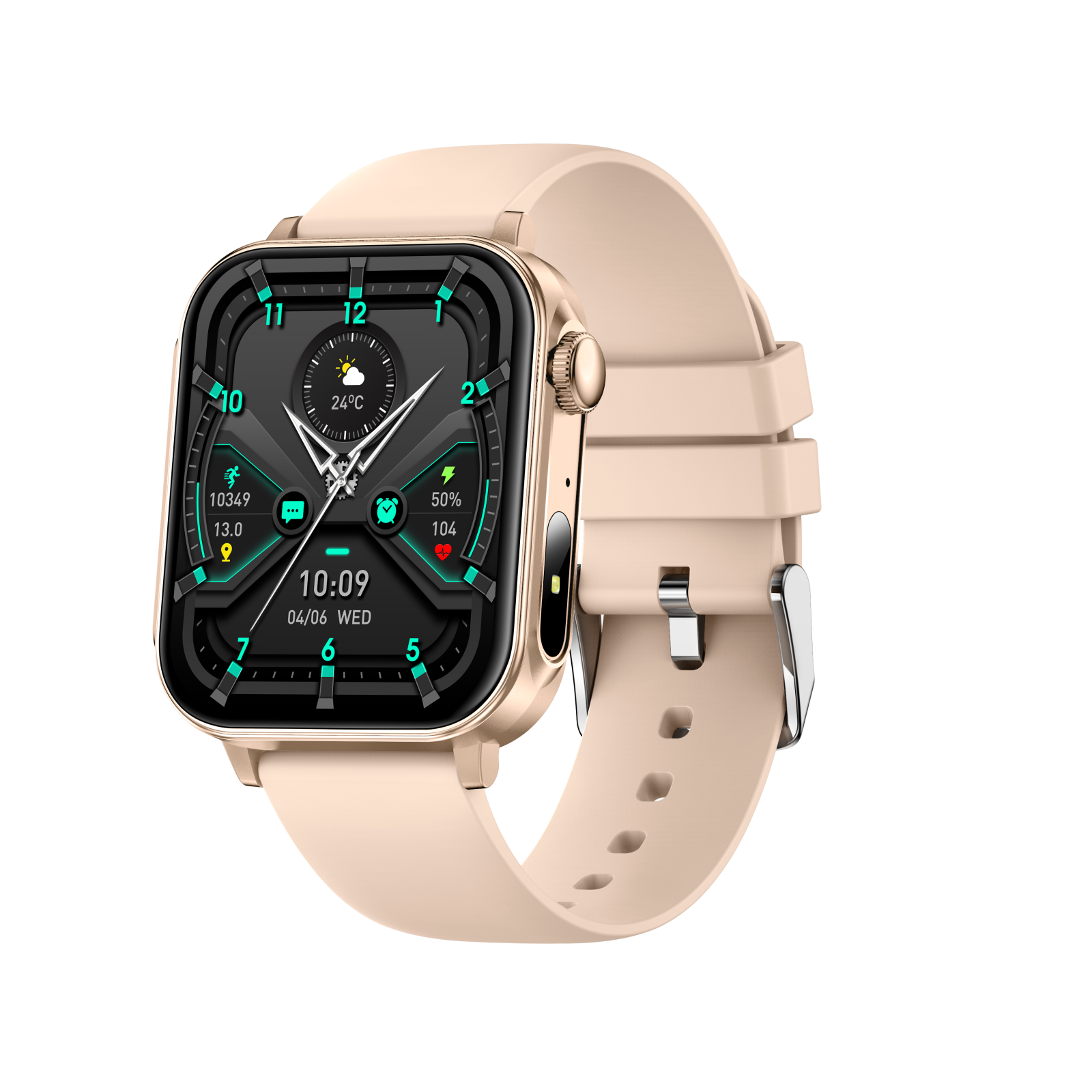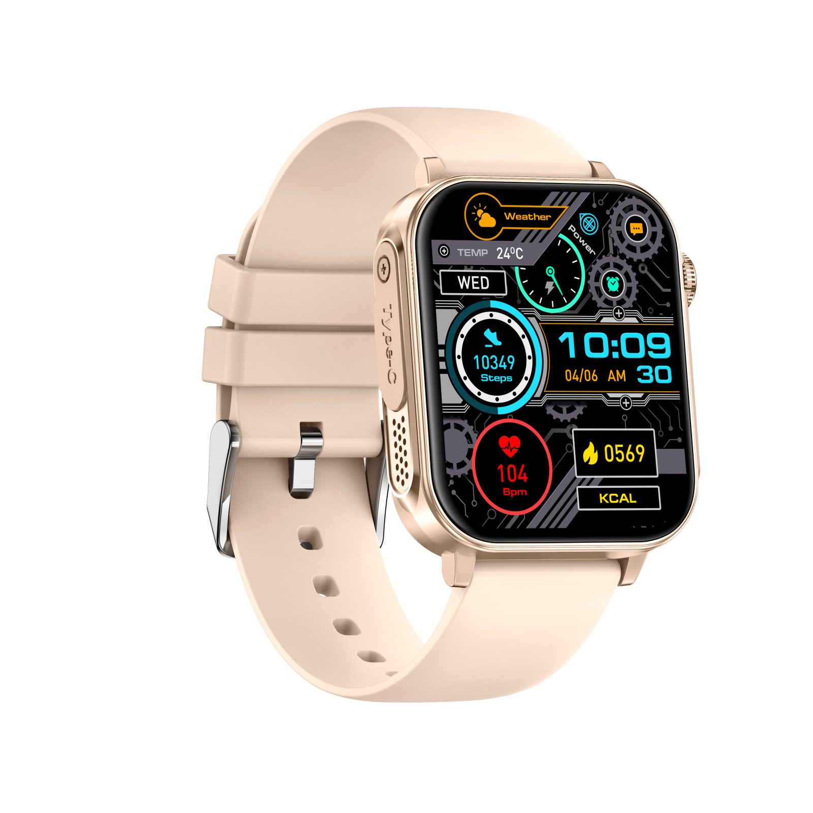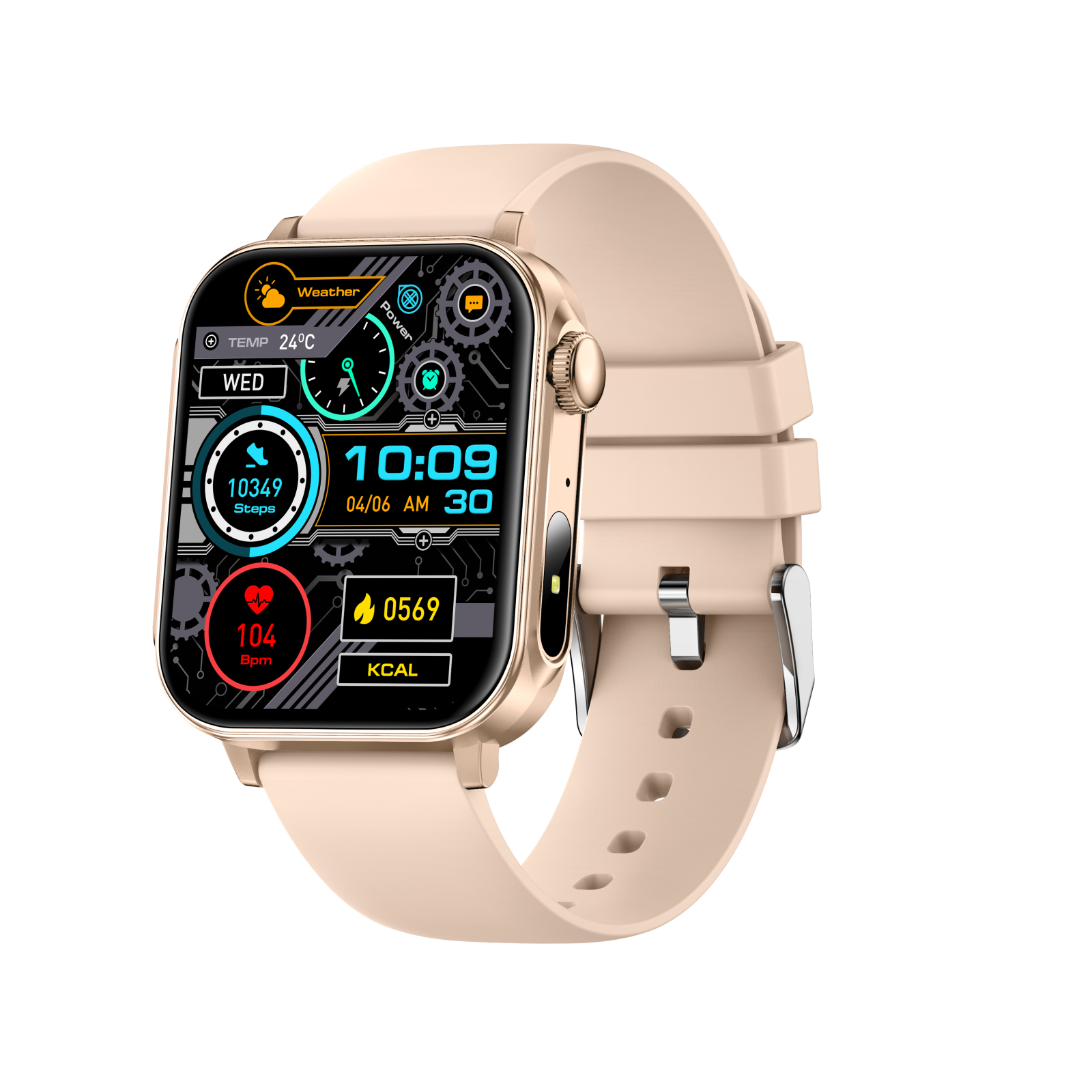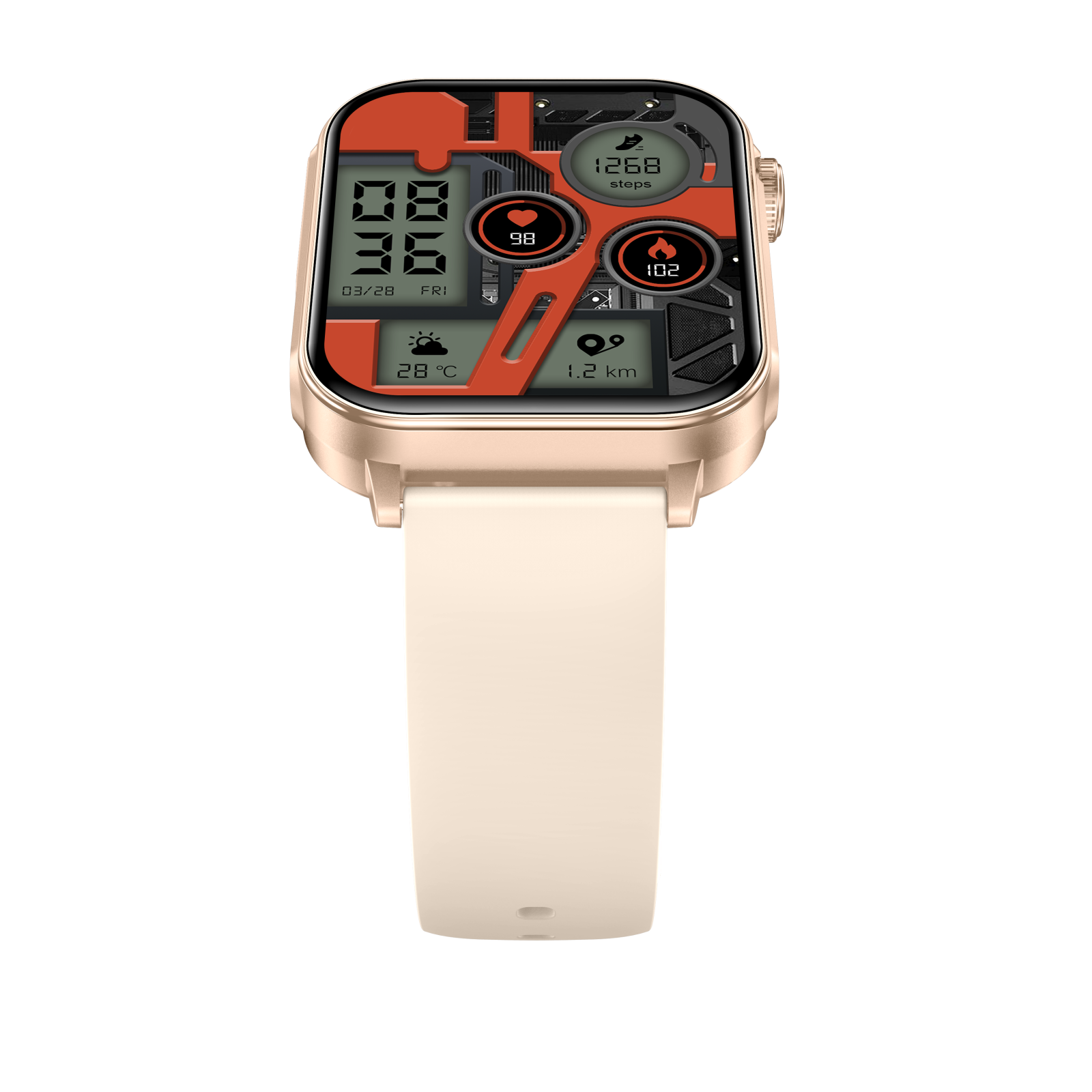iSEN V96 Okosóra, Arany, 1.83" HD, Pulzusszám, Vérnyomás, Véroxigén (SpO2), Hívás Funkció, 280 mAh, IP67, Szilikon Szíj, DaFit Alkalmazás, Zenevezérlés, Időjárás, Android 5.2 / iOS 9.0