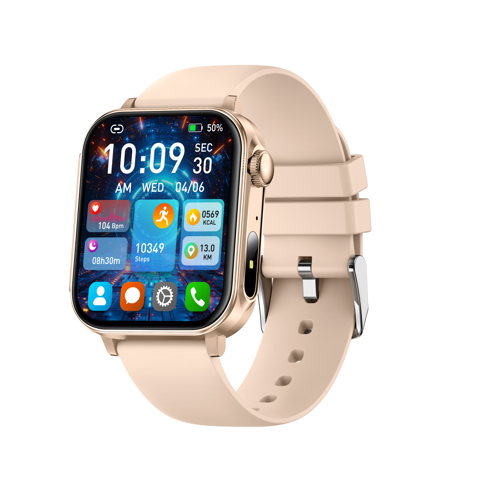 Hívás funkció: Támogatja a hívásokat közvetlenül a csuklóról.