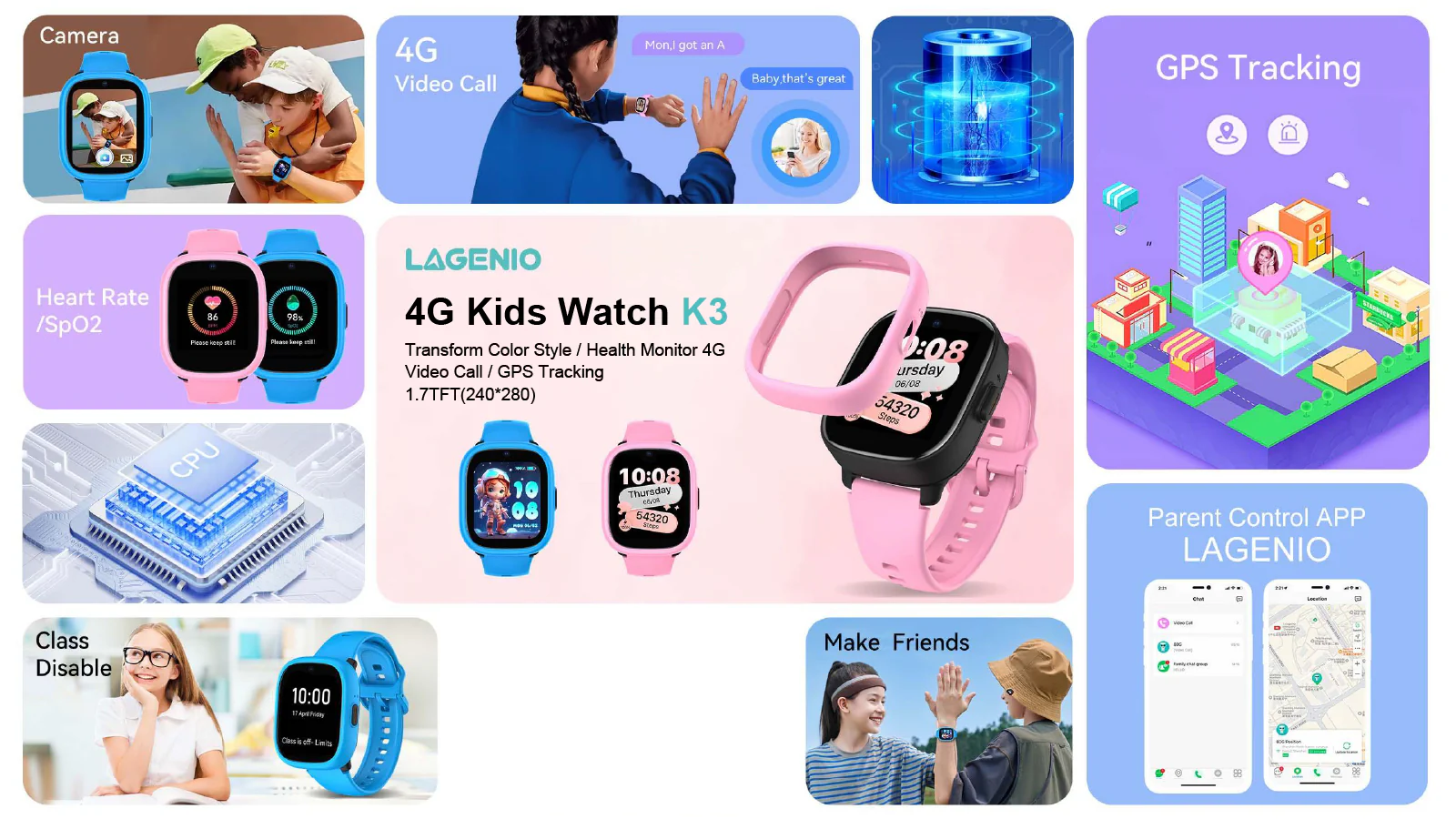 LAGENIO K3: 4G Smartwatch for Kids, Advanced GPS