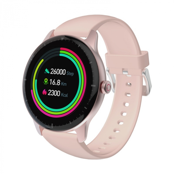 Smartwatch Doogee CR1 Rose Gold, 1.28" Full touch screen, Ritm cardiac, Control camera si muzica, Meteo, Monitorizare somn, IP68, 300mAh
