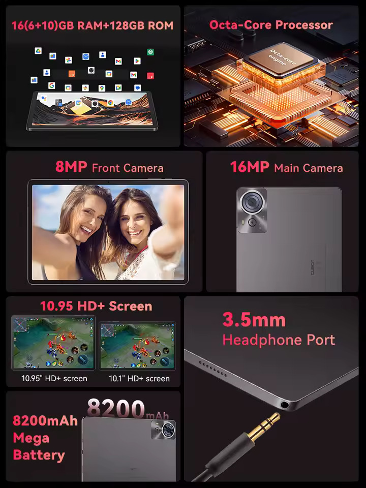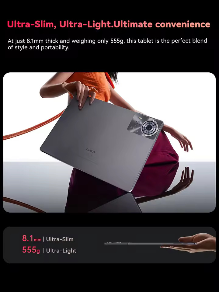 Tablet Cubot Tab 70, Szürke, 4G, 10.95" HD+, Android 14, 16GB RAM (6GB + 10GB bővíthető), 128GB ROM, 16MP, 8200mAh, Dual SIM