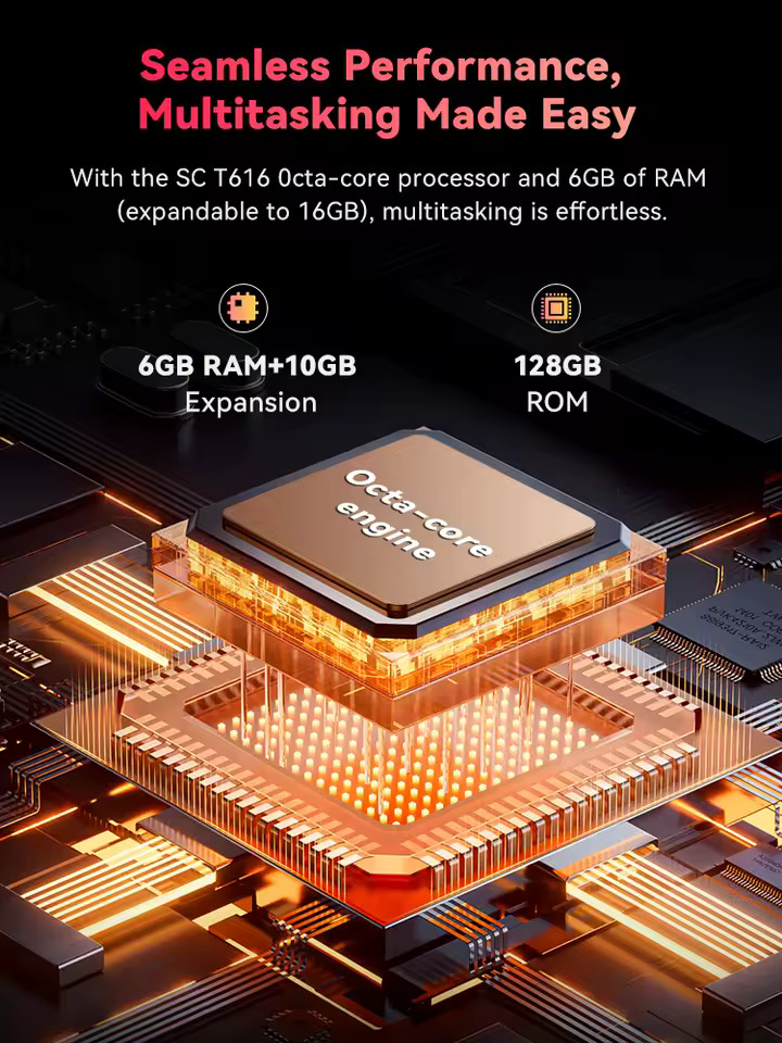 | Processzor | SC T616 nyolcmagos 2x A75 2,0 GHz + 6x A55 1,8 GHz |