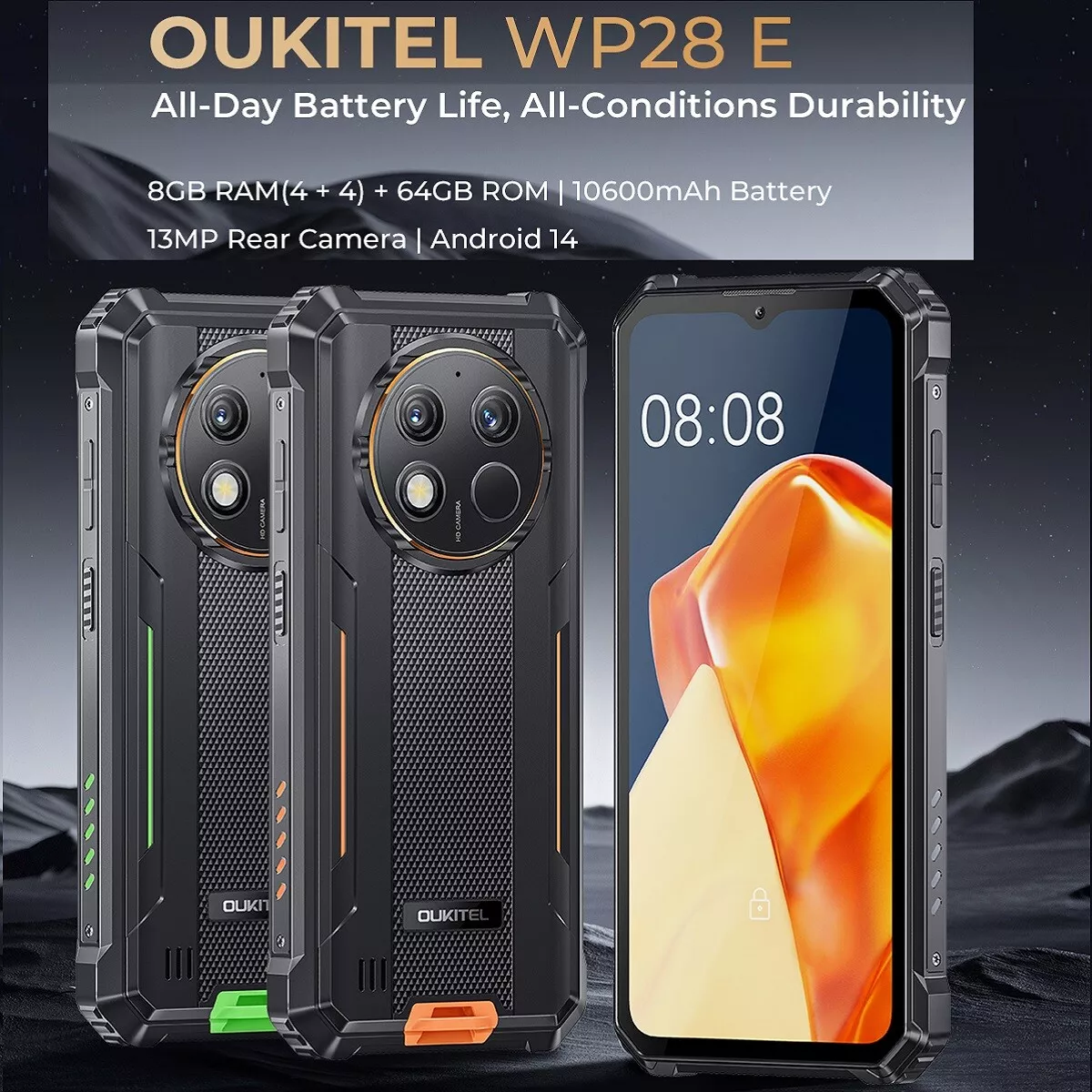 Mobiltelefon Oukitel WP28 E Black, 4G, 6.52" HD, 8GB RAM (4GB+4GB bővíthető), 64GB ROM, Android 14, 13MP Kamera, T606, NFC, 10600mAh, Dual SIM