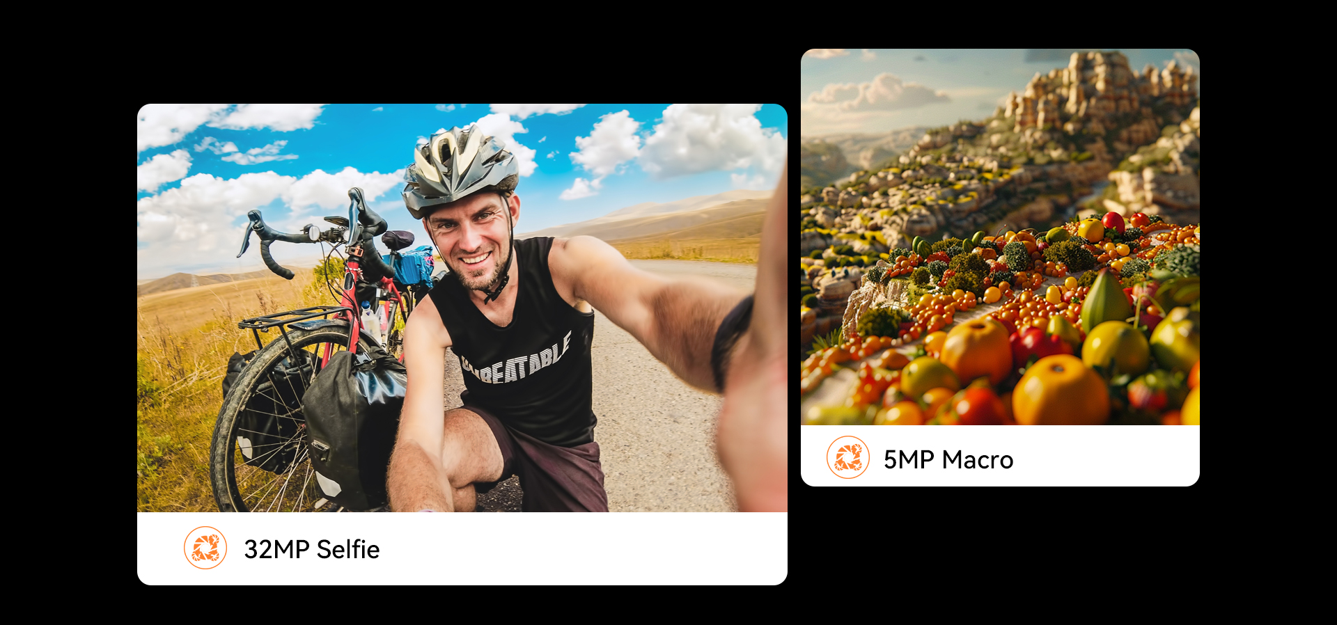 Capture your world in breathtaking detail with the 100MP main camera. From wide-open landscapes to the tiniest of details using the 5MP macro lens, every shot is an adventure in itself. And for selfies that shine, the 32MP front camera ensures you're always looking your best.
