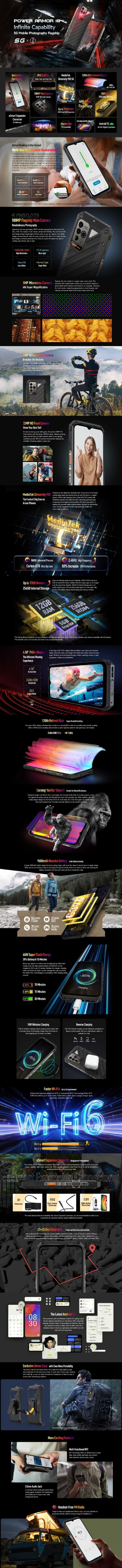 Telefon mobil Ulefone Armor 18 5G Negru, 6.58" IPS FHD+, 12GB + 5GB RAM, 256GB ROM, Android 12, Dimensity 900, NFC, IP68, 9600mAh, Dual SIM