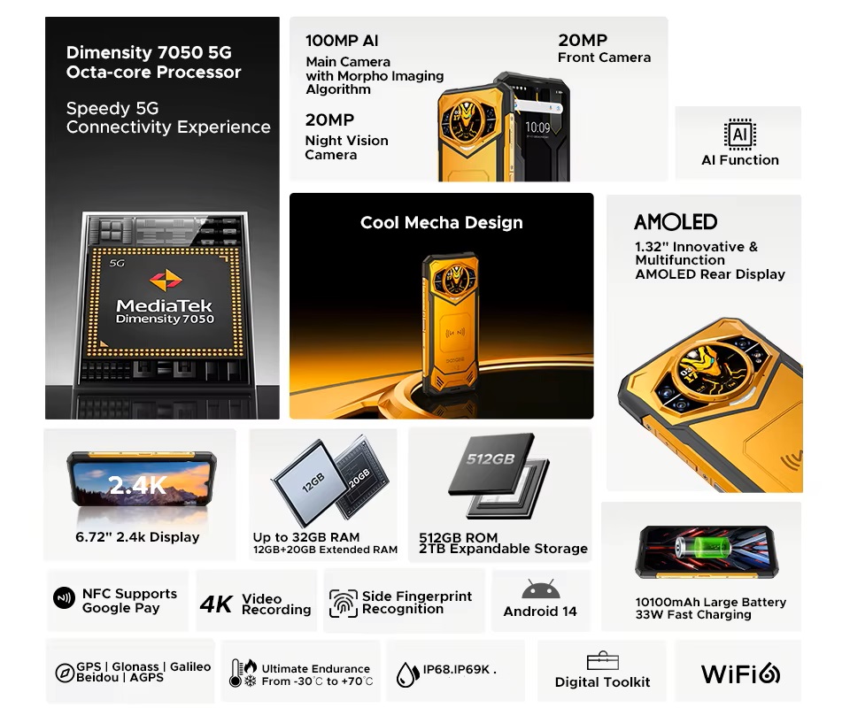 10100mAh Large Battery | Up to 32GB RAM+ 512GBDimensity 7050 | 100MP AI Incredible Main Camera