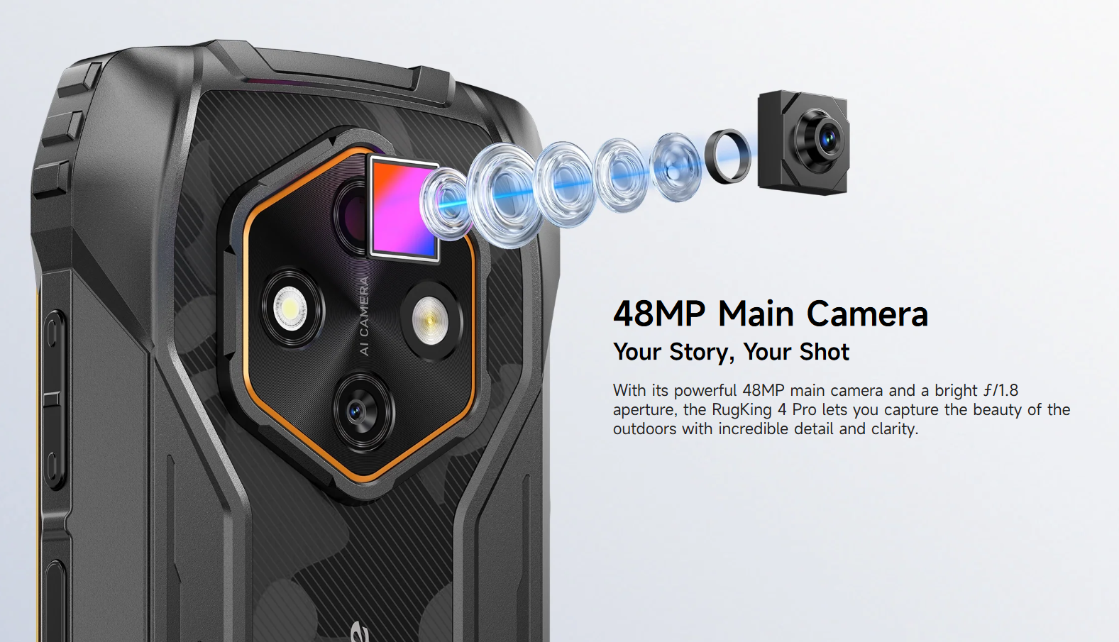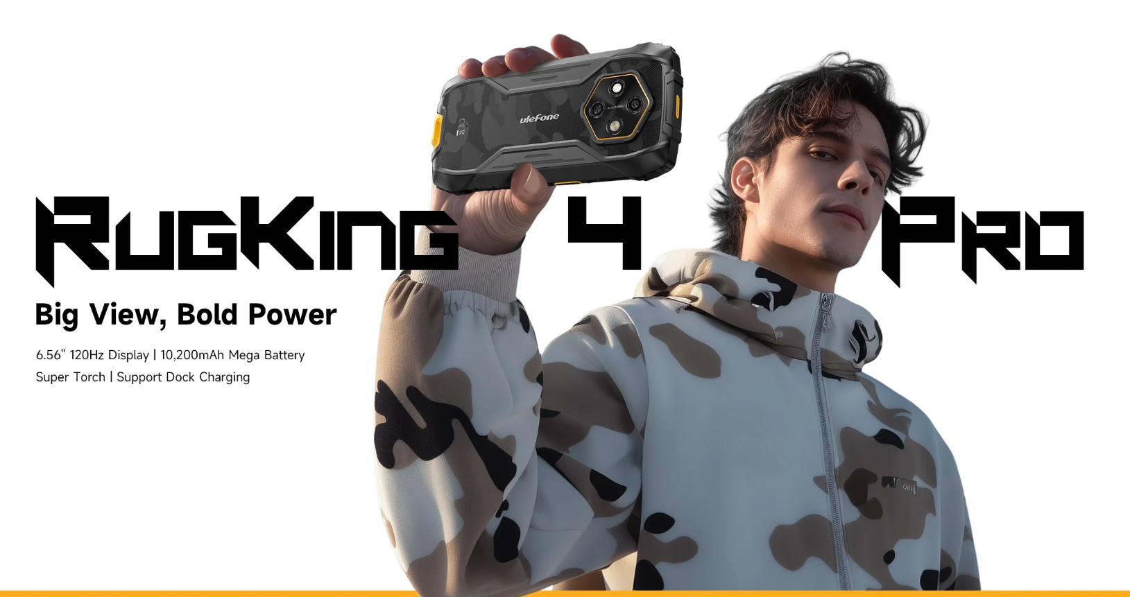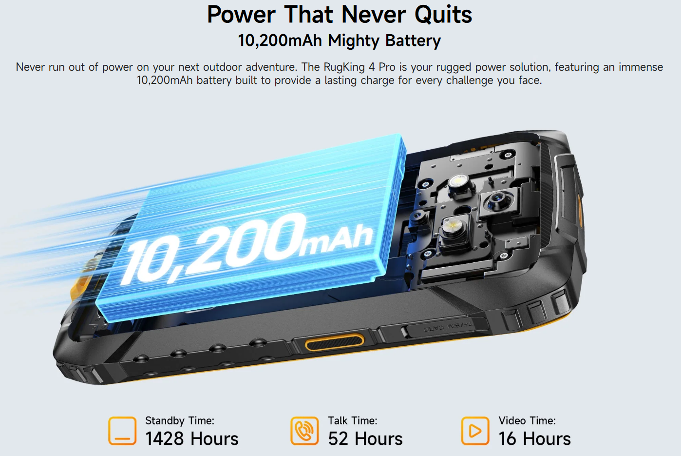 Ulefone RugKing 4 Pro Mobiltelefon, Fekete, 4G, 6.56" IPS LCD, 8GB RAM, 256GB, 48MP, Android 15, Unisoc T7250, AI Funkciók, 10200mAh, 18W, Dual SIM