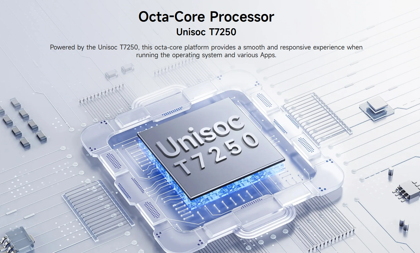 | Processzor | Unisoc T7250 UMS9230E Nyolc(Octa)‑magos 2× Cortex‑A57 @ 1.8GHz + 6× Cortex‑A55 @ 1.6GHz, 12nm |