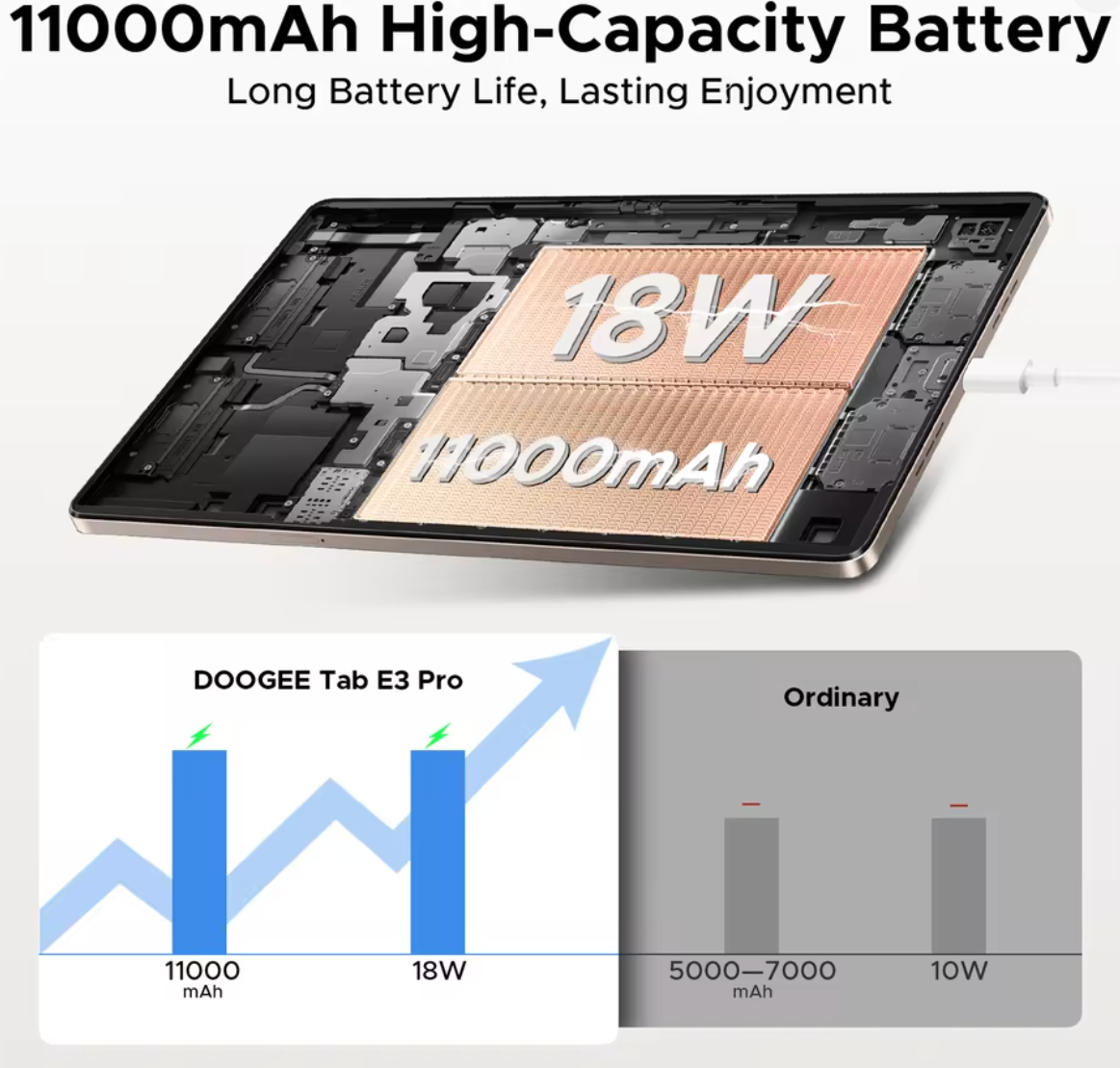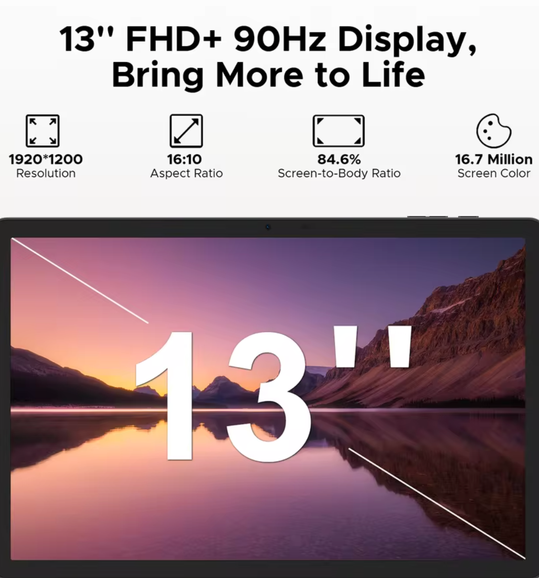 Doogee Tab E3 Pro tablet, Fekete, 4G, 13'' FHD+ IPS 90Hz, Android 15, Helio G100, 32GB RAM (8GB + 24GB bővíthető), 256GB ROM, 13MP + 8MP kamera, 11000mAh, 18W, Arcfelismerés, Dupla SIM