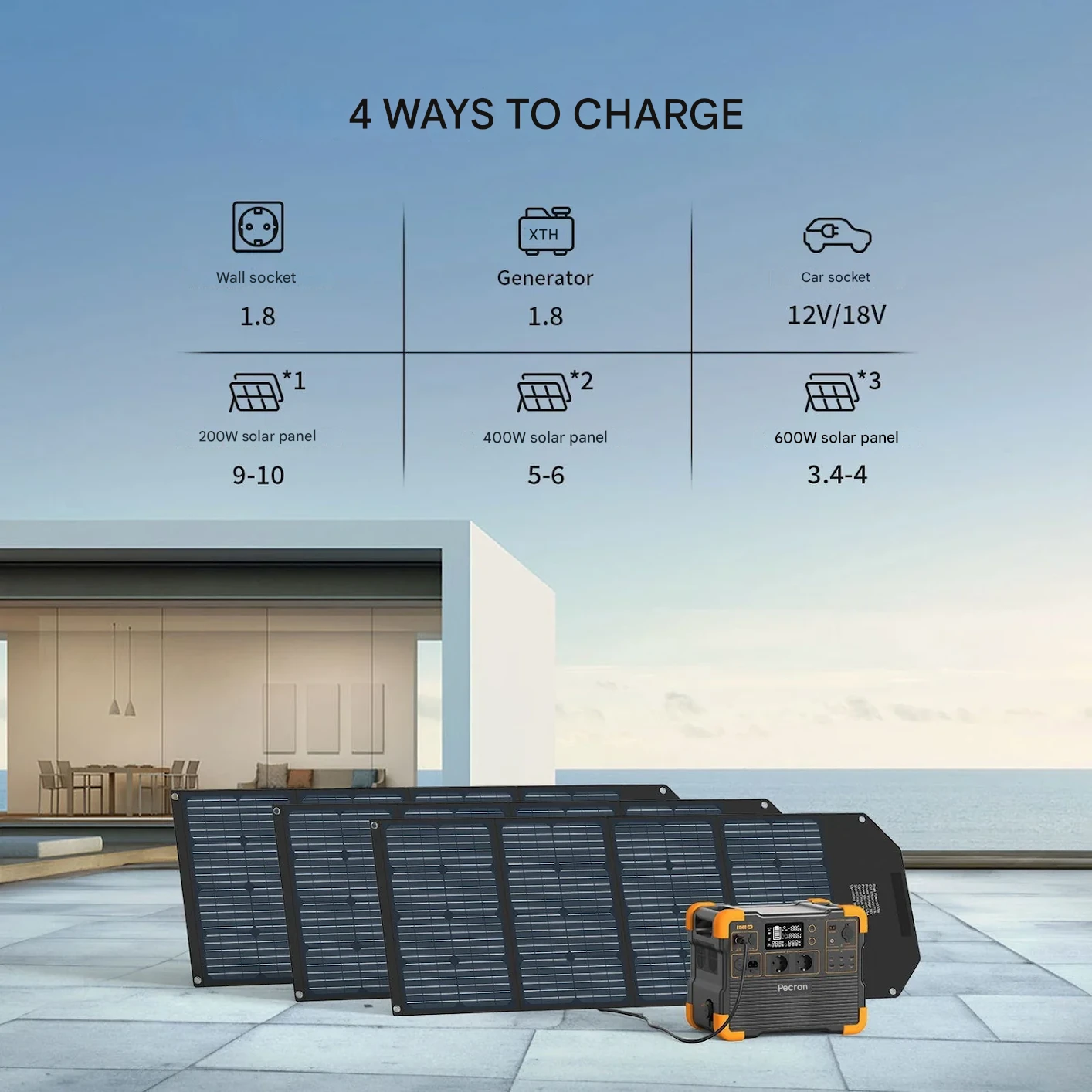 Csomag Hordozható elektromos töltőállomás PECRON E1500LFP, 1536Wh, 2200W, 230V, Gyors Toltes, LiFePO4, MPPT Szabalyozo, BMS Vedekezes + PECRON PV200 Hordozható Napelemes Panel, 200W