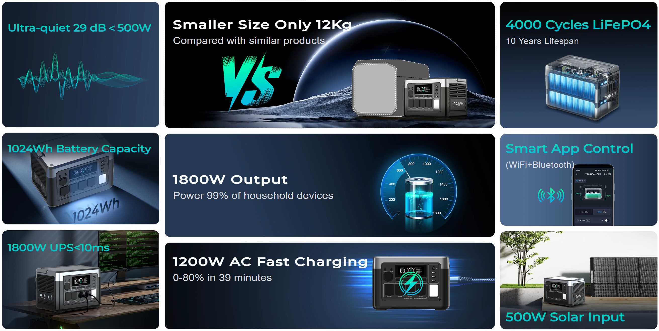 | Akkumulátor kapacitás | 1024Wh LiFePO₄ (4000 ciklus, 10 év élettartam) |