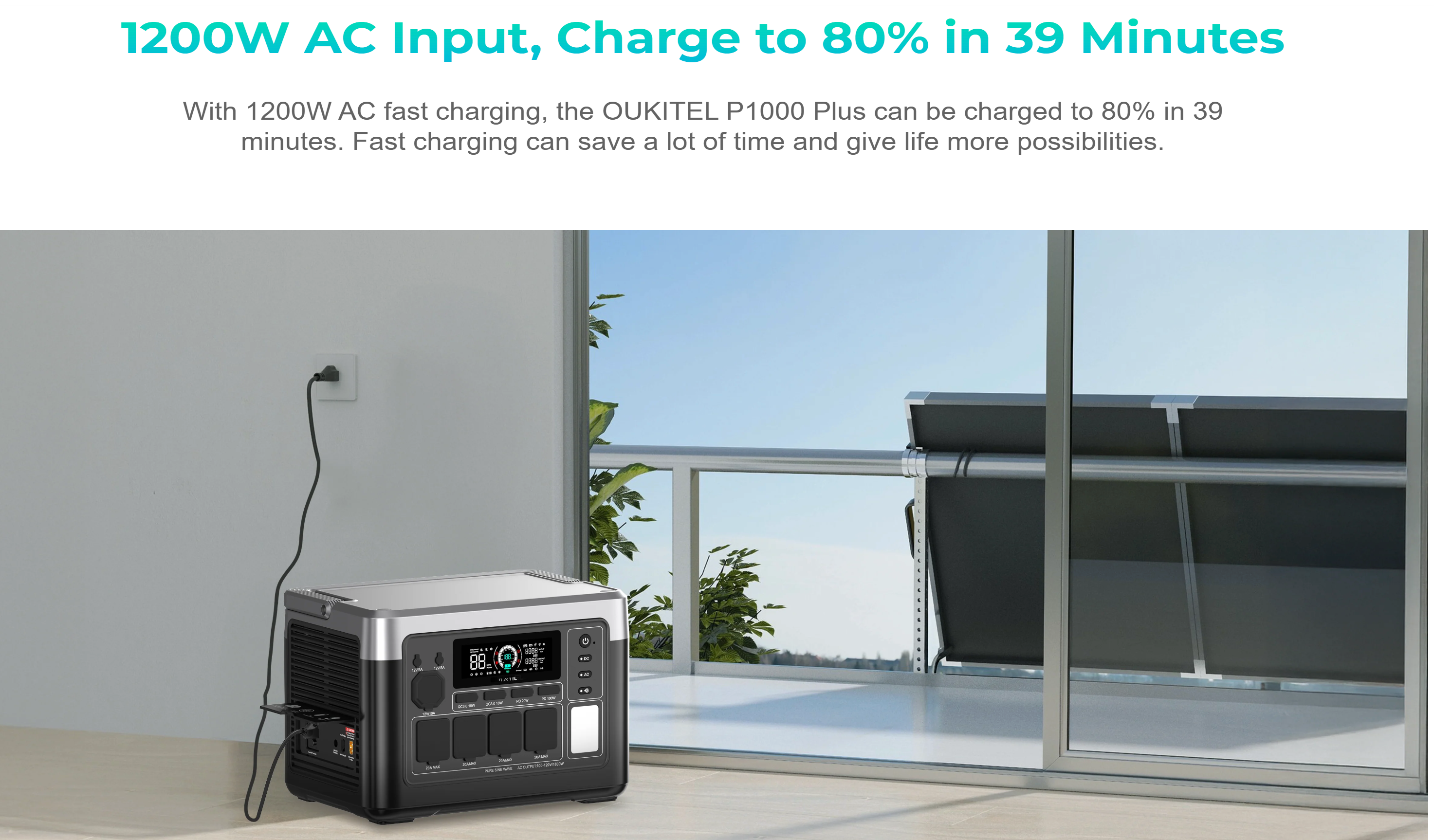 | Portok | AC bemenet: 1200W Napelemes bemenet: 500W Támogatott töltések: Hálózati, napelemes, autós, kettős töltés |