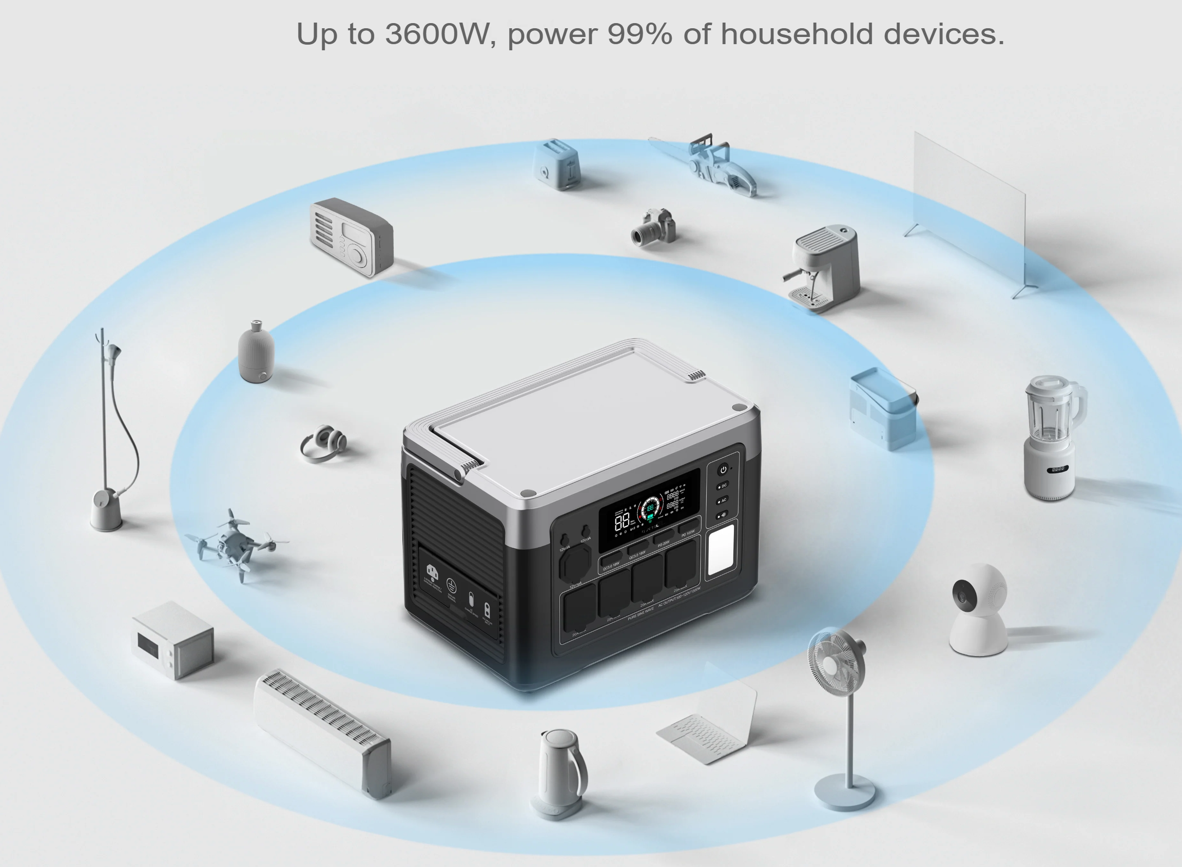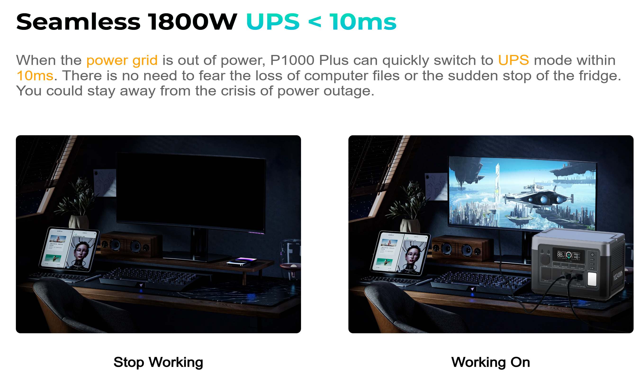 | Teljesítmény | 1800W Kimenet (A háztartási eszközök 99%-át működteti) UPS < 10ms automatikus átkapcsolás |